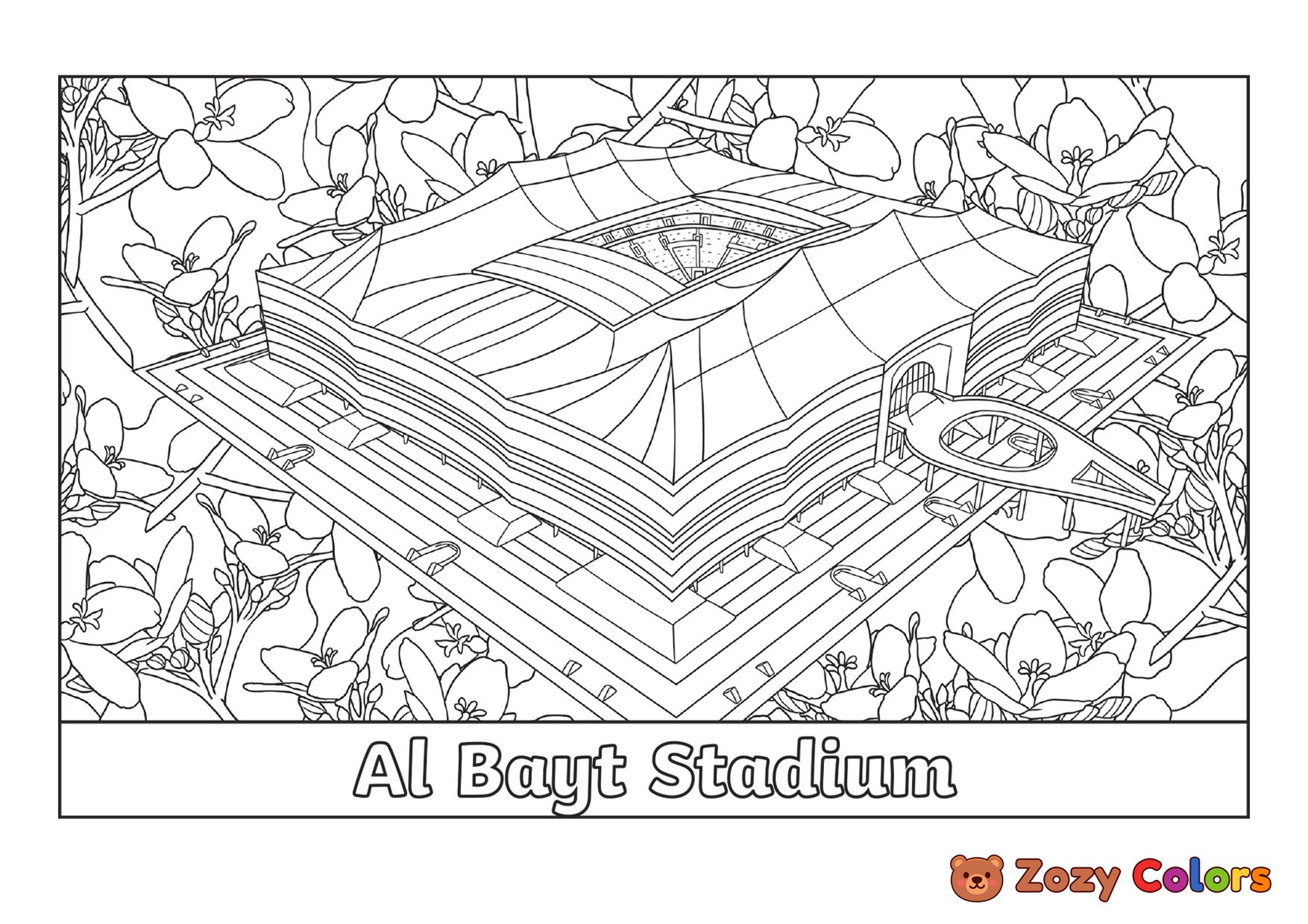 Al Bayt Stadium. Coloring page to print or download and color for your kids.