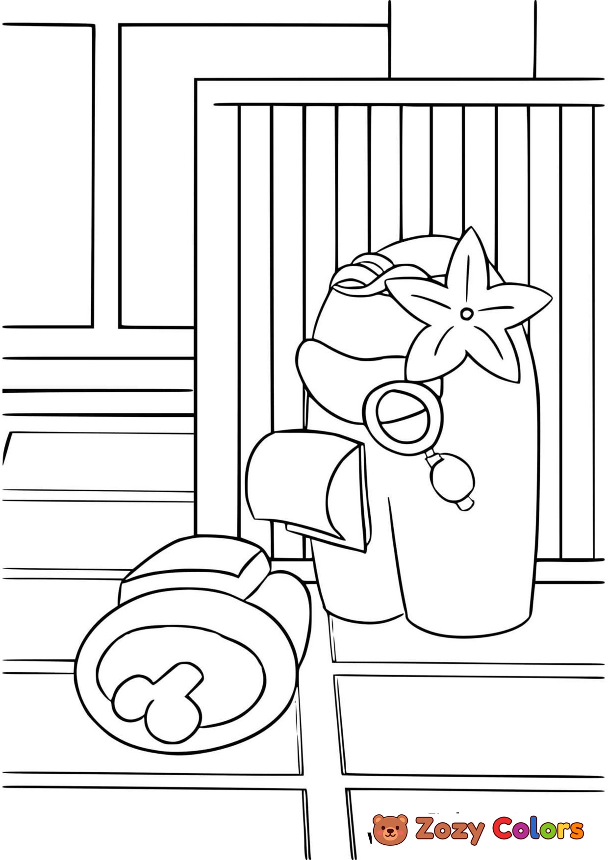 Among Us Detective looking for clues! Who Among Us is the imposter? Coloring page to print or download and color.