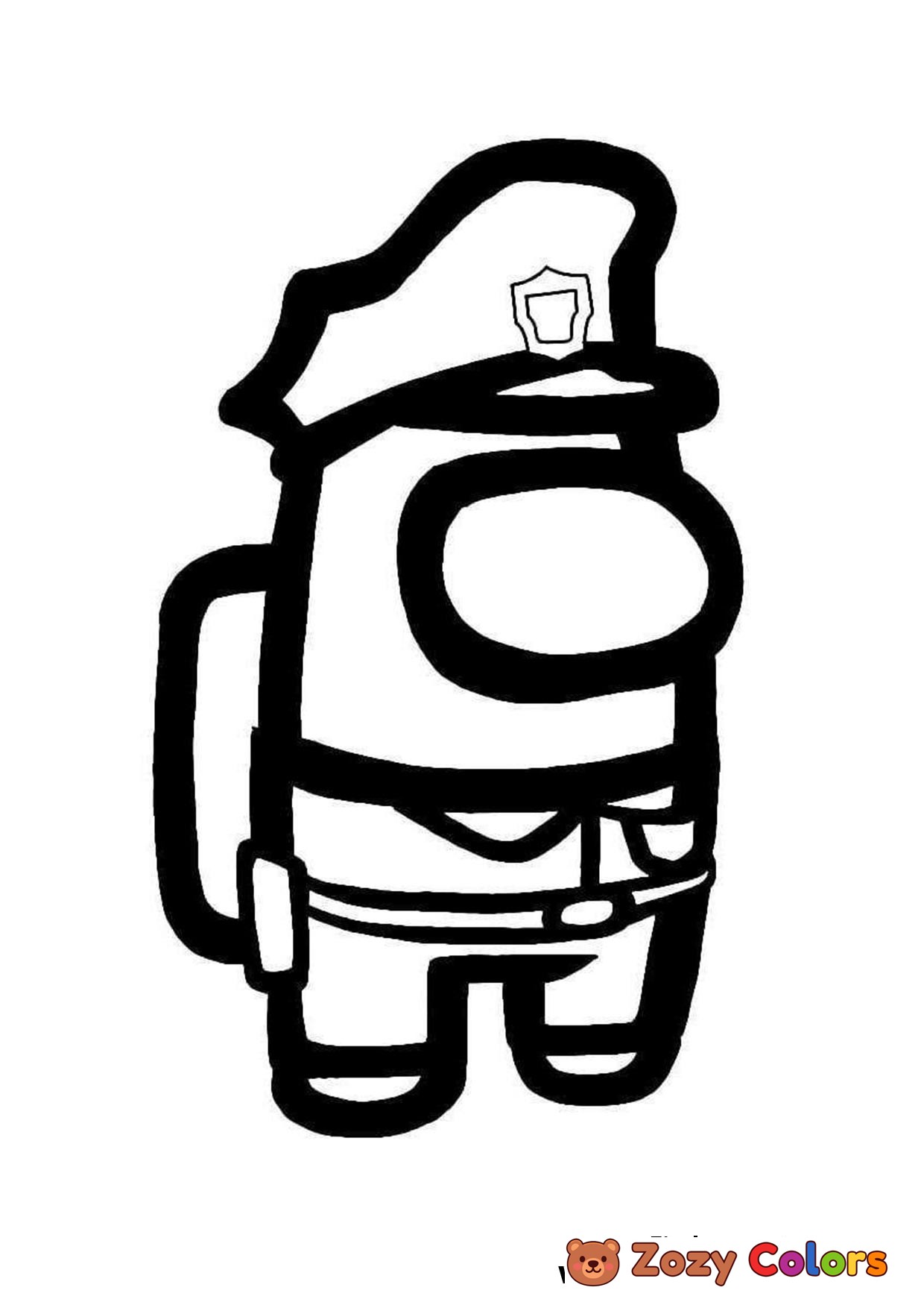 Among Us Policeman policing the game! Who Among Us is the imposter? Coloring page to print or download and color.
