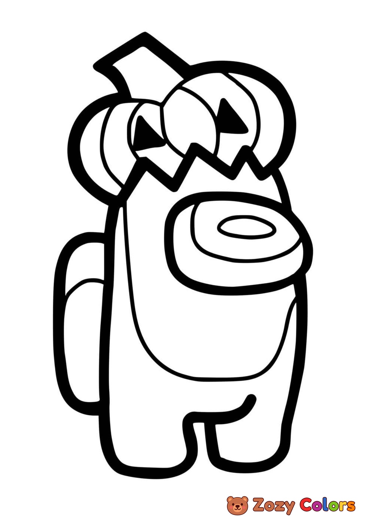 Amonng Us Halloween pumpkin character. Coloring page to print or download and color for your kids.