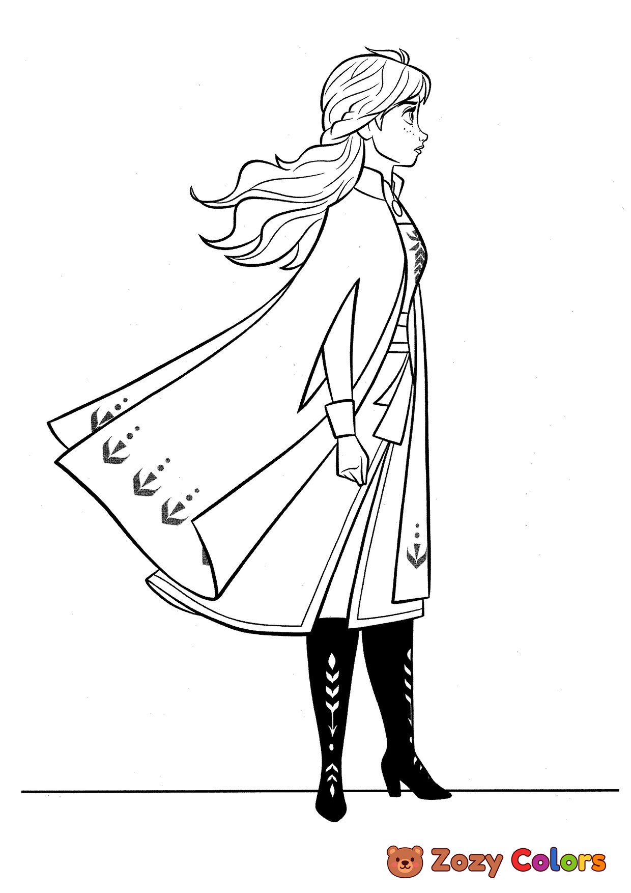 Anna looking into distance. Coloring page to print or download and color for your kids.