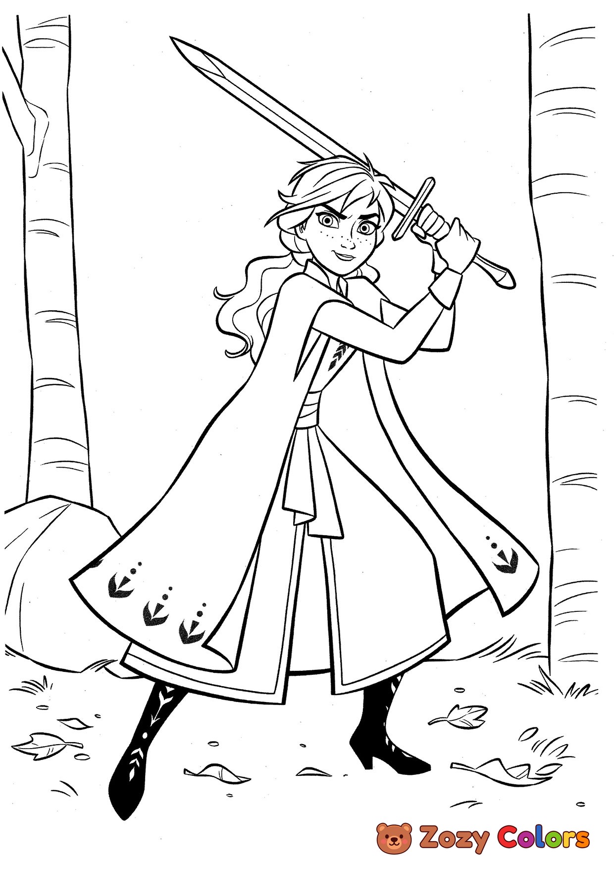 Anna with a sword. Coloring page to print or download and color for your kids.