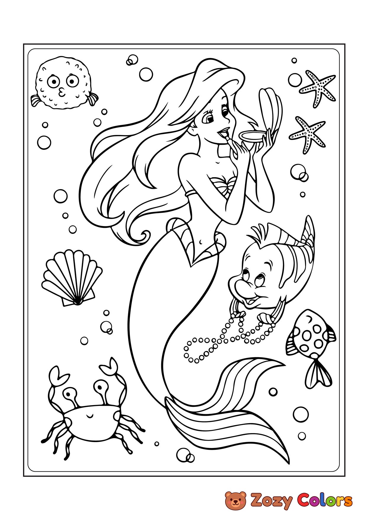 Ariel Disney princess. Coloring page to print or download and color for your kids.