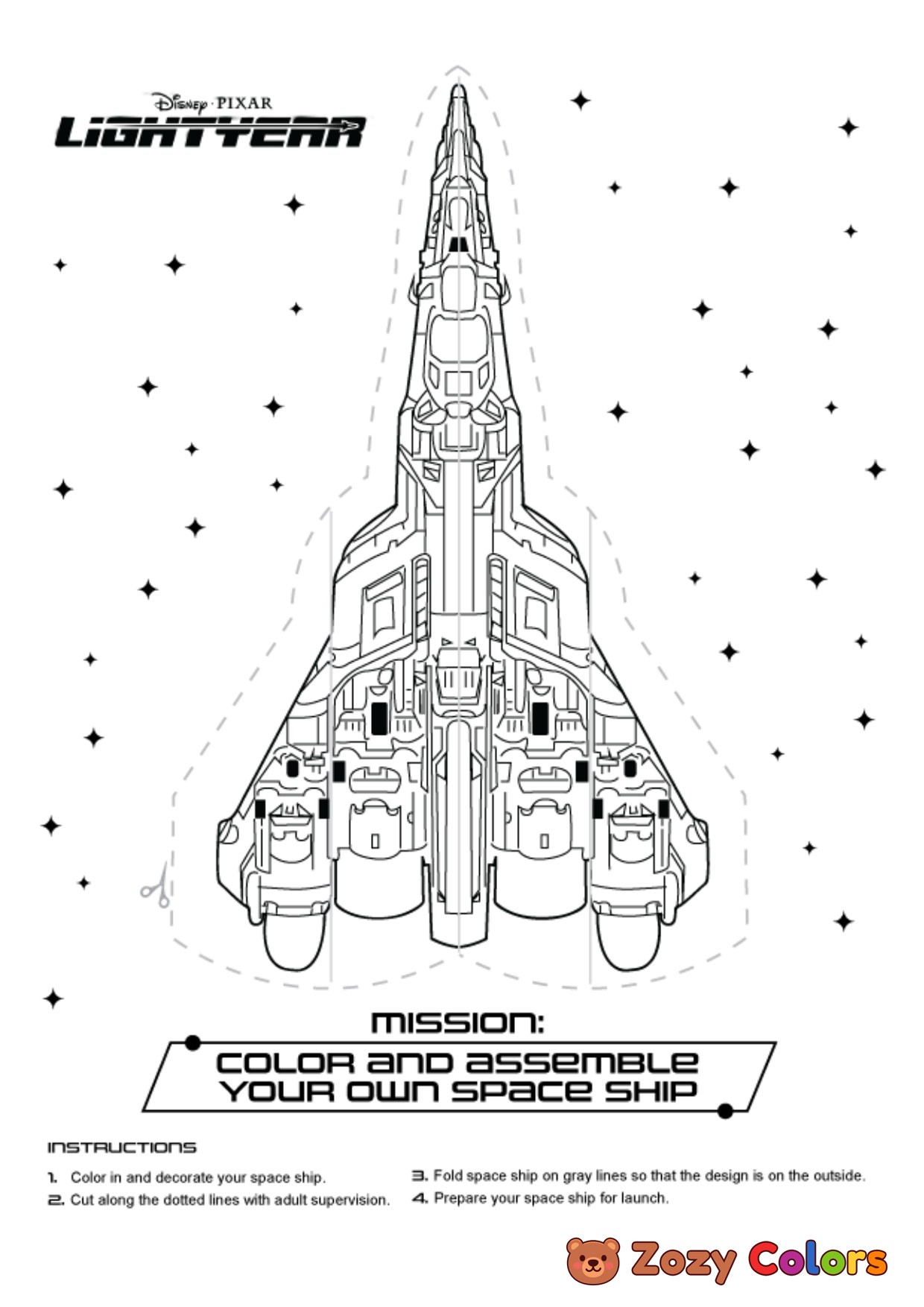 Assemble Lightyear space ship. Coloring page to print or download and color for your kids.