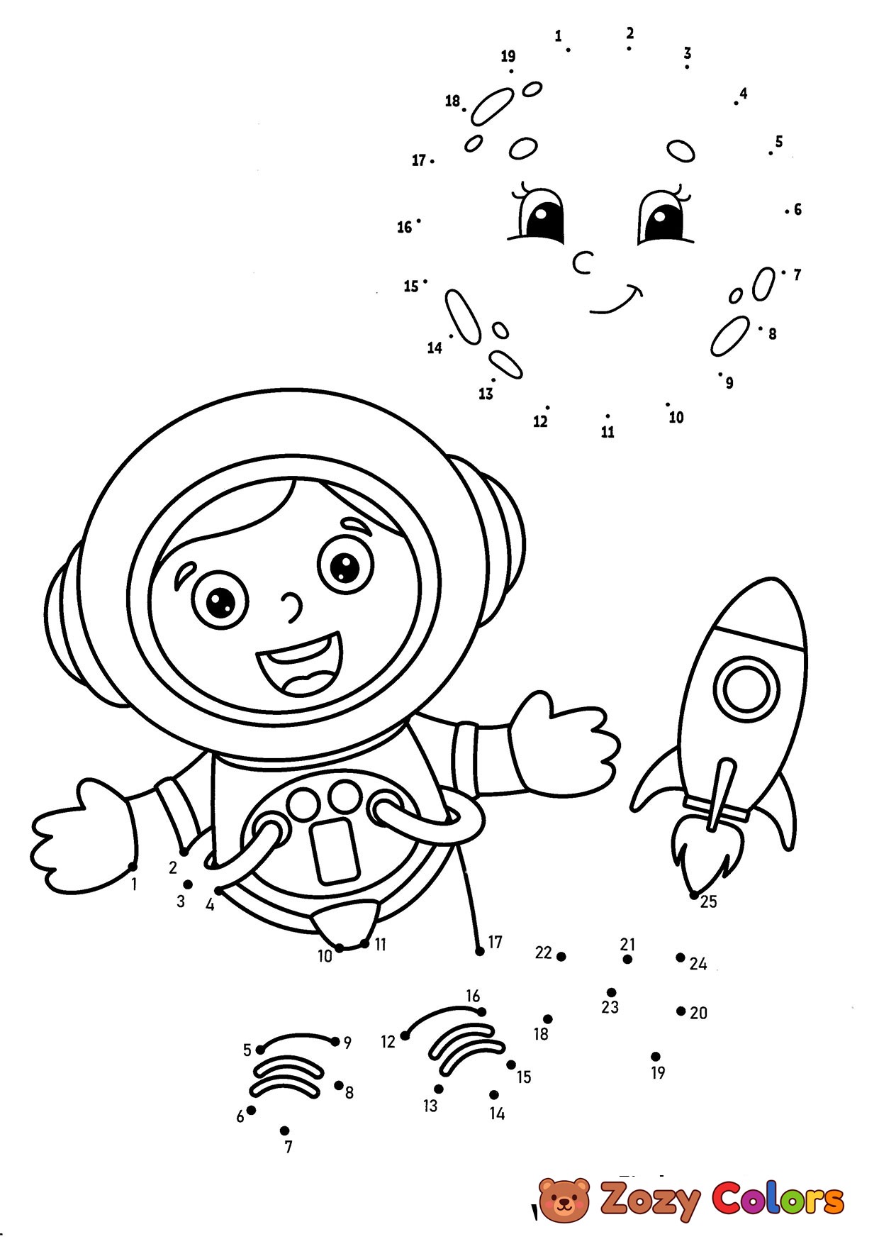 Astronaut - Free Dot the dots worksheets. Free and easy print for your kids.