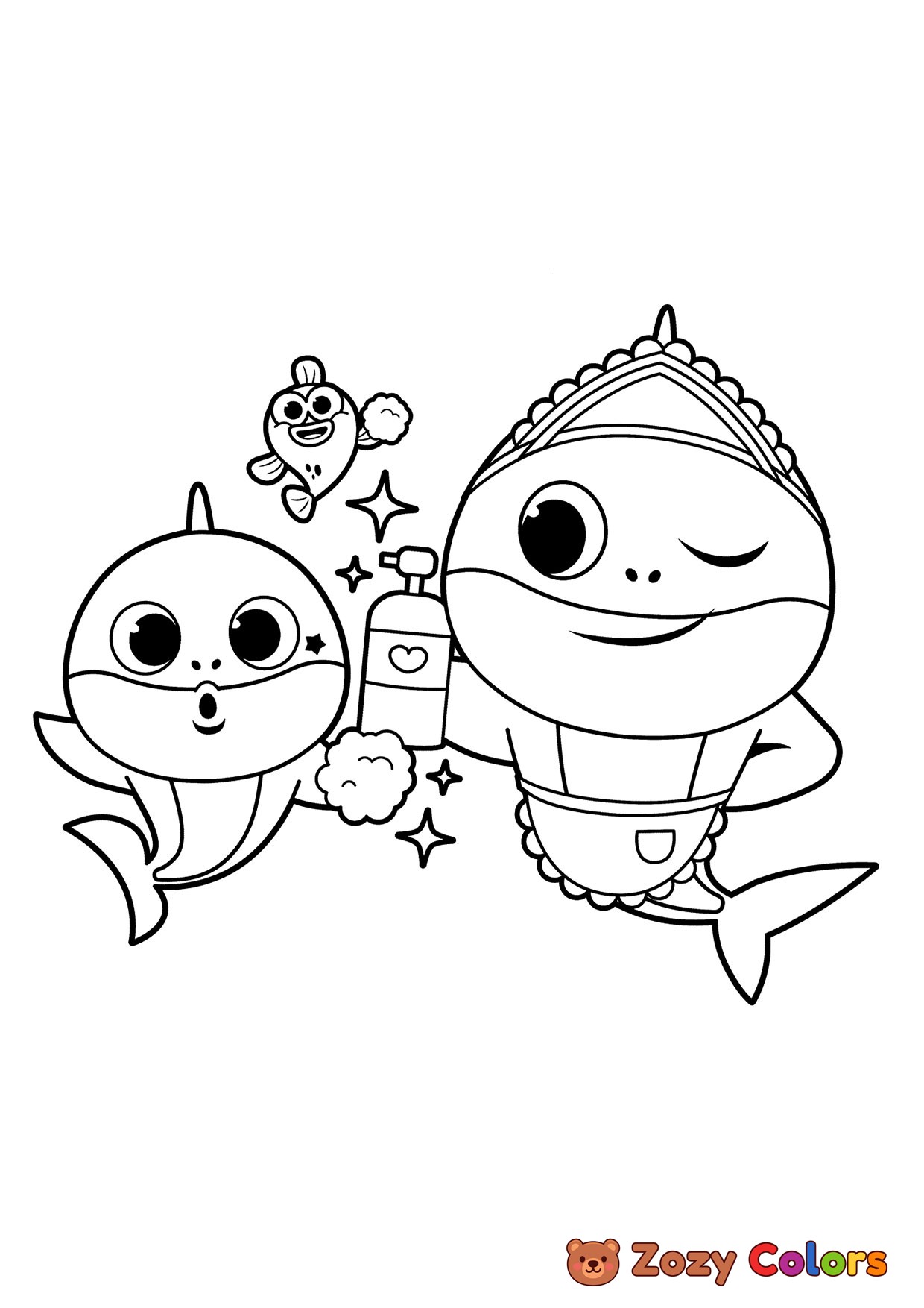Baby shar with Mommy. Coloring page to print or download and color for your kids.