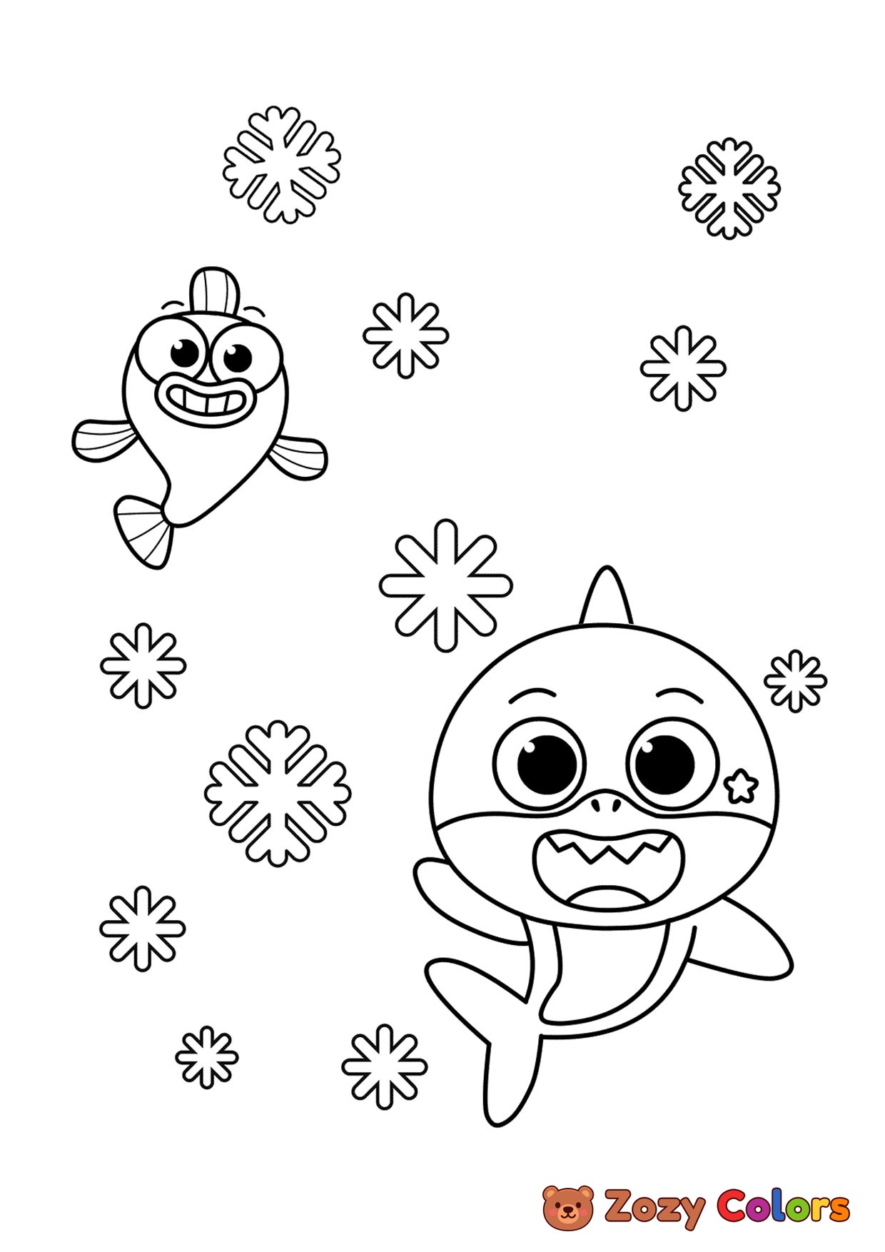 Baby shark christmas. Coloring page to print or download and color for your kids.