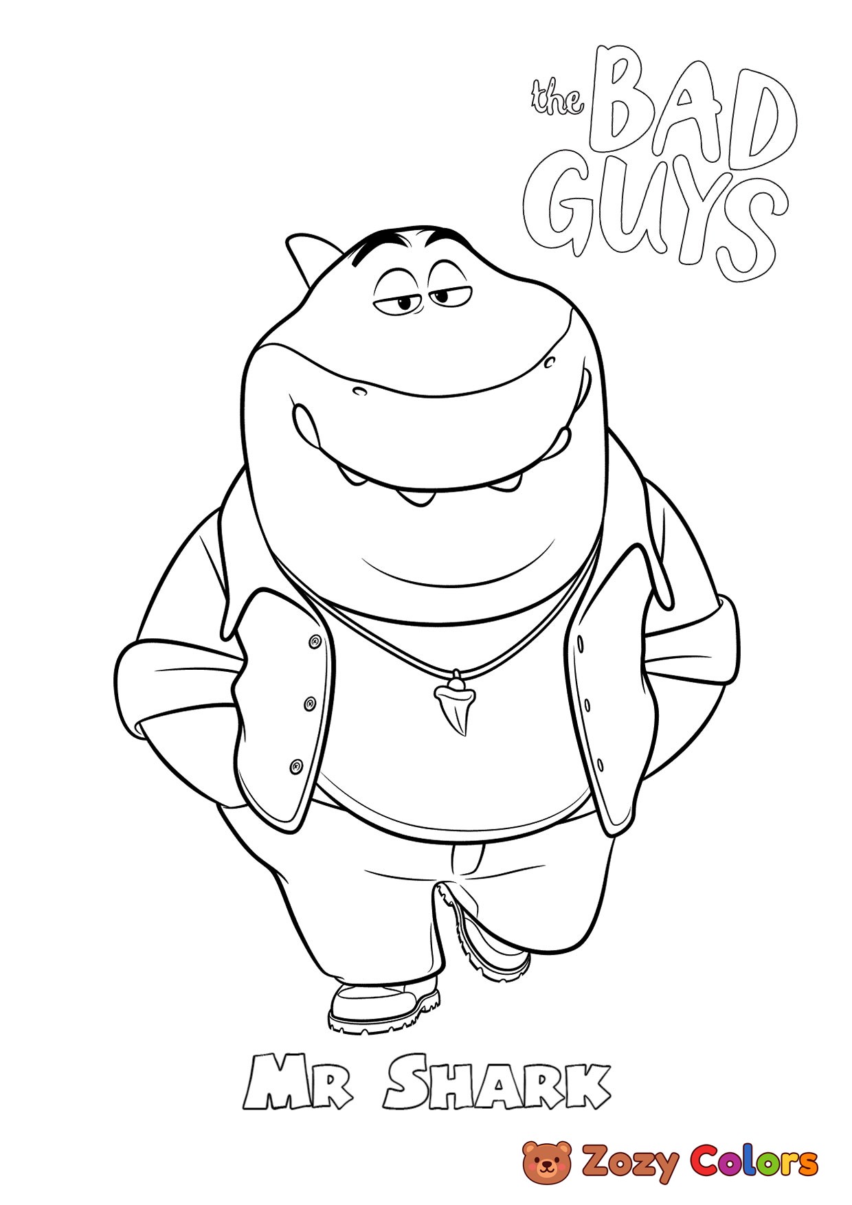 Bad guy mr shark. Coloring page to print or download and color for your kids.