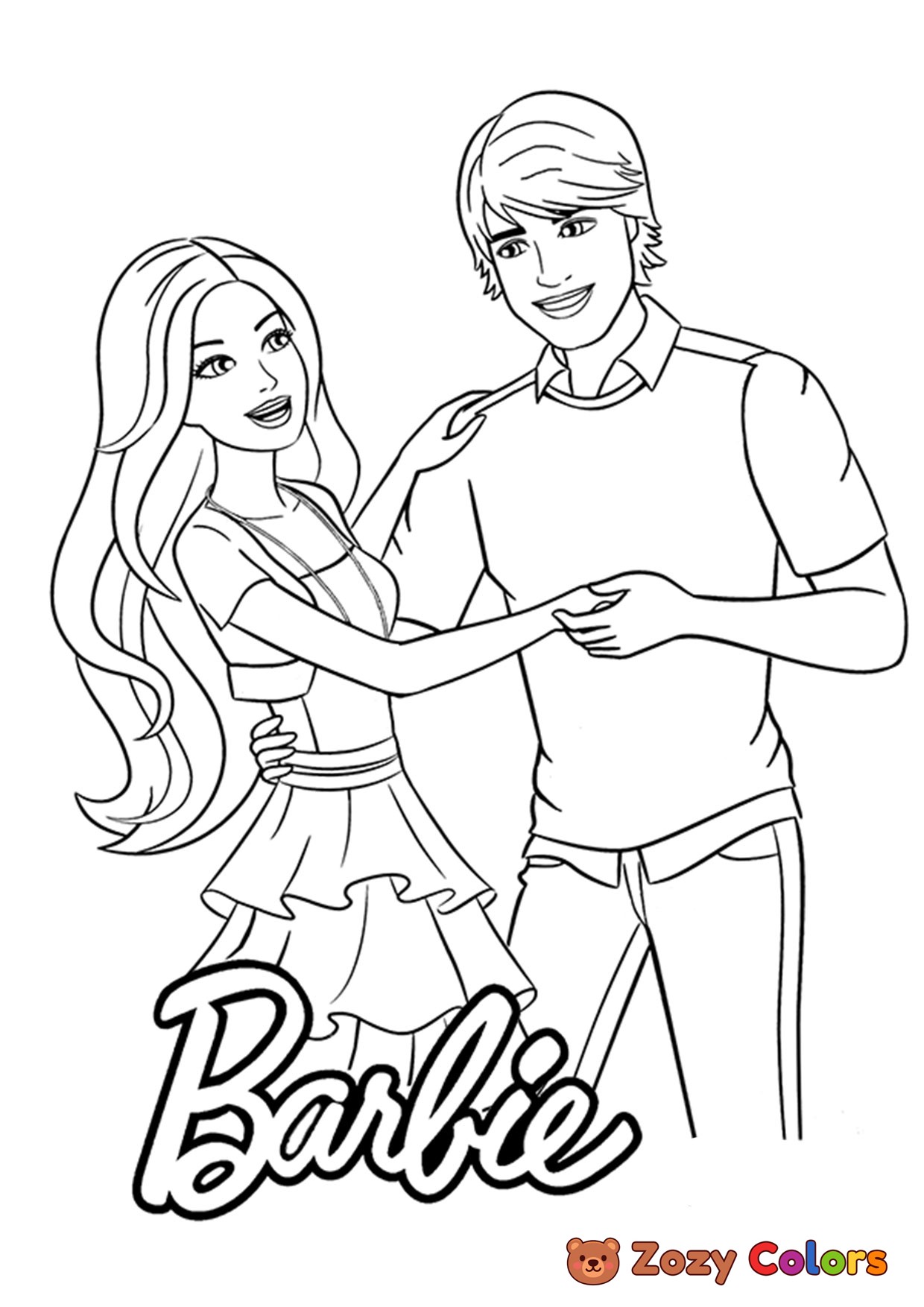 Barbie and Ken. Coloring page to print or download and color for your kids.