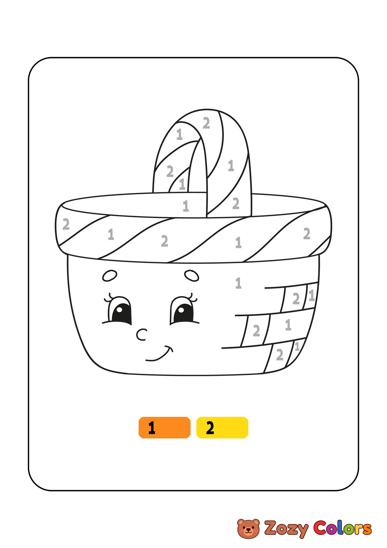 Basket color by numbers. Coloring page to print or download and color for your kids.