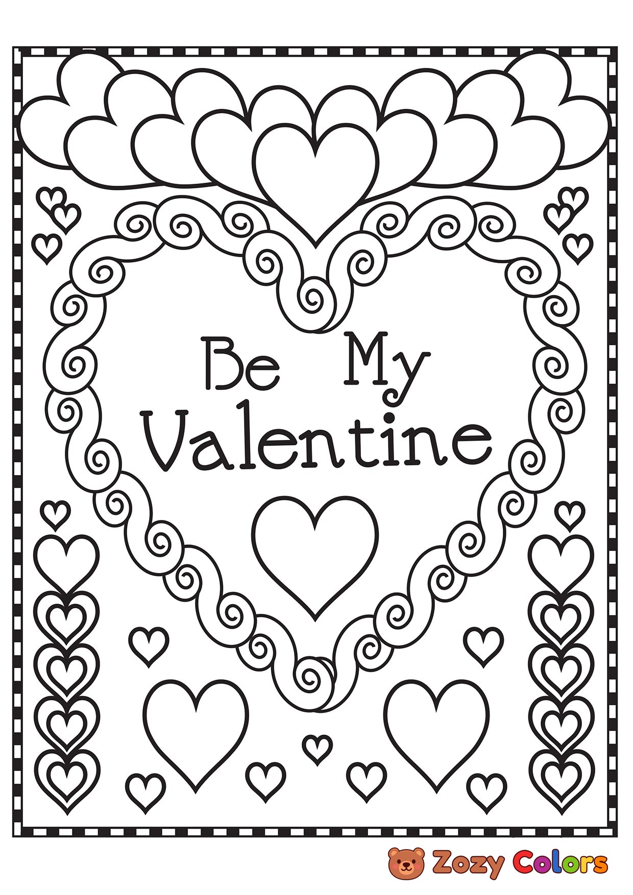 Be my Valentine card. Coloring page to print or download and color for your kids.