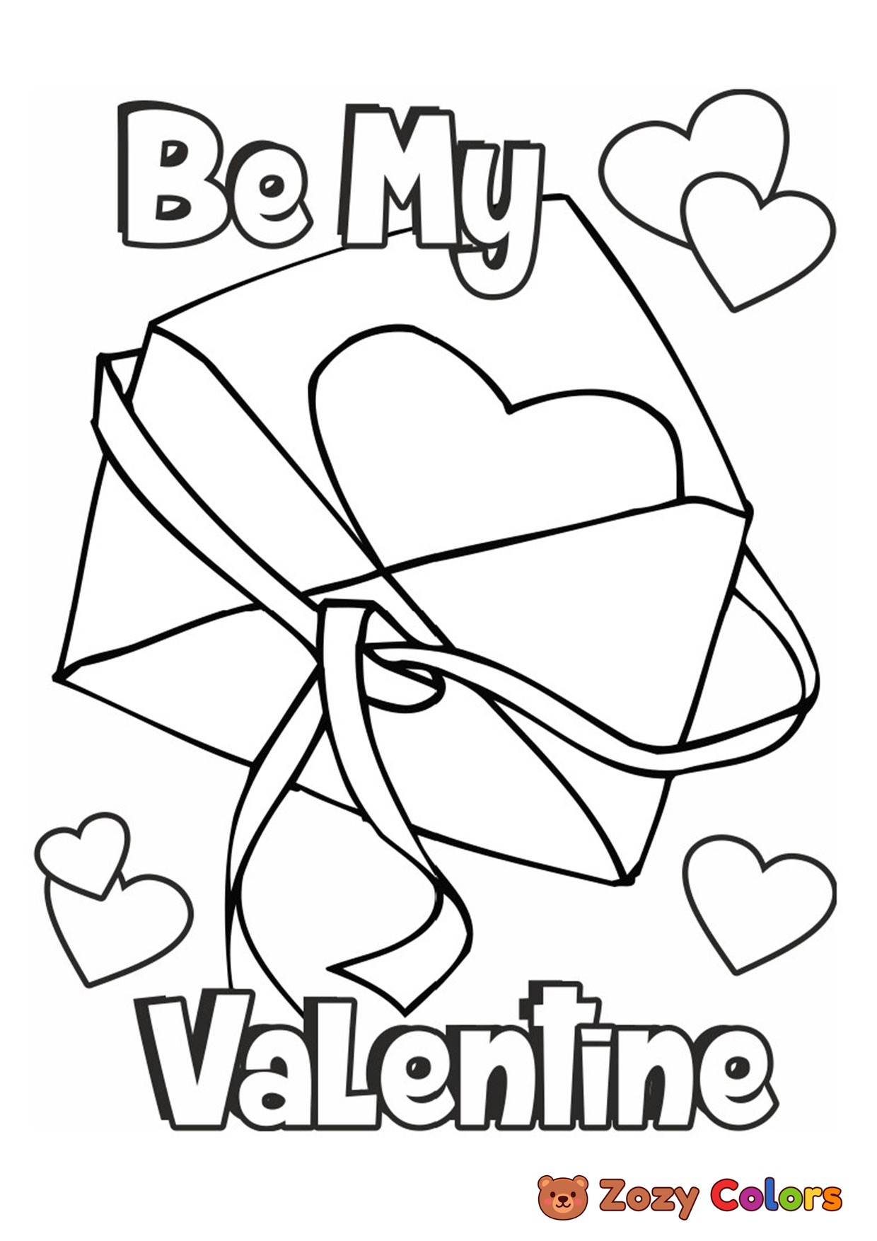 Be my Valentine hearth card. Coloring page to print or download and color for your kids.