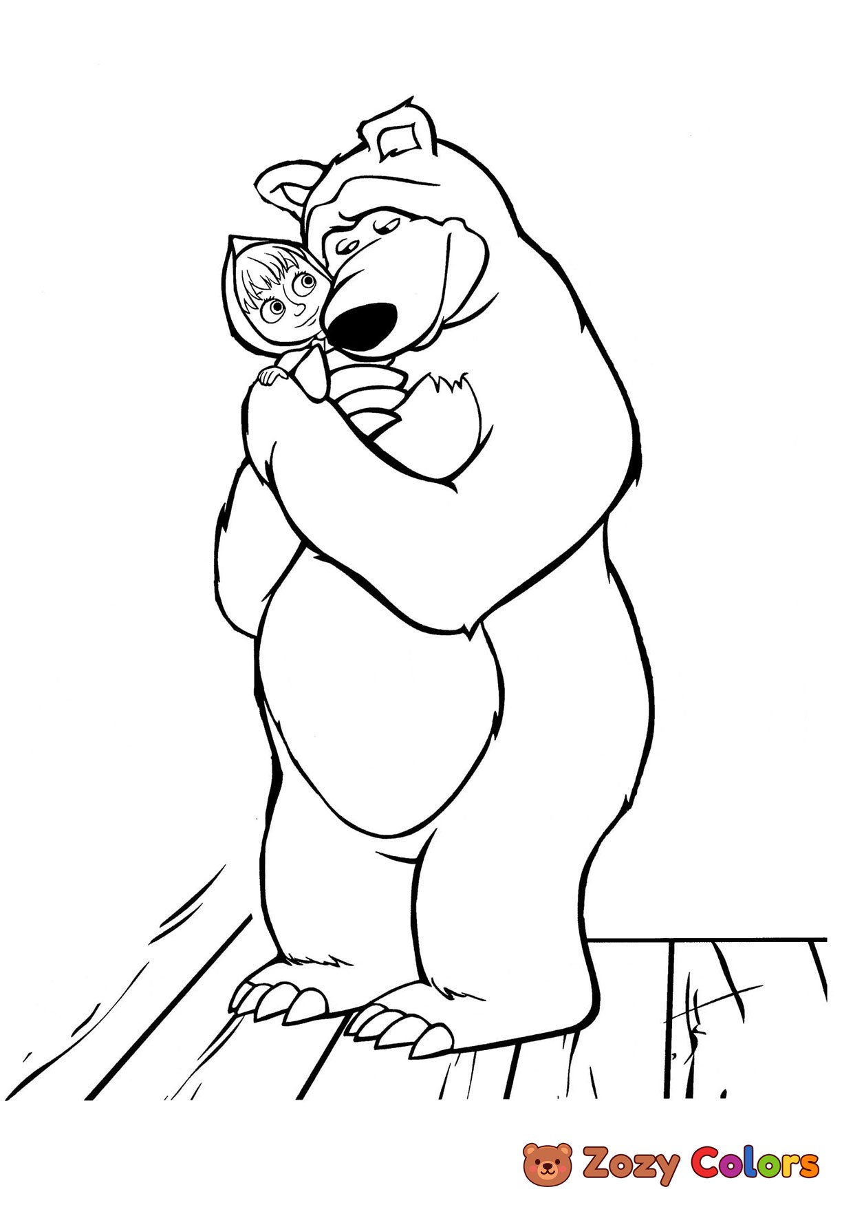 Bear hugging Masha. Coloring page to print or download and color for your kids.