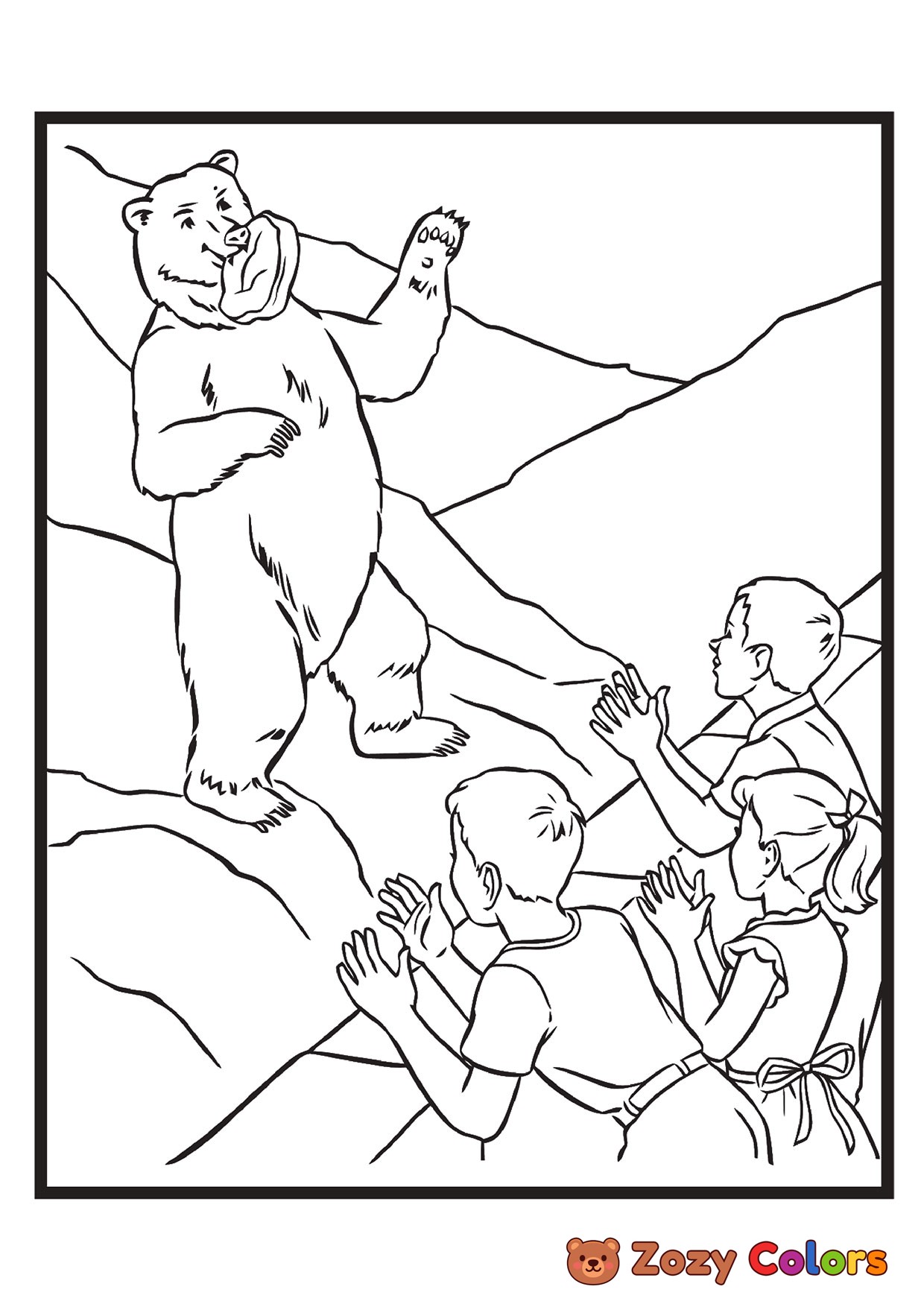 Bear in zoo. Coloring page to print or download and color for your kids.