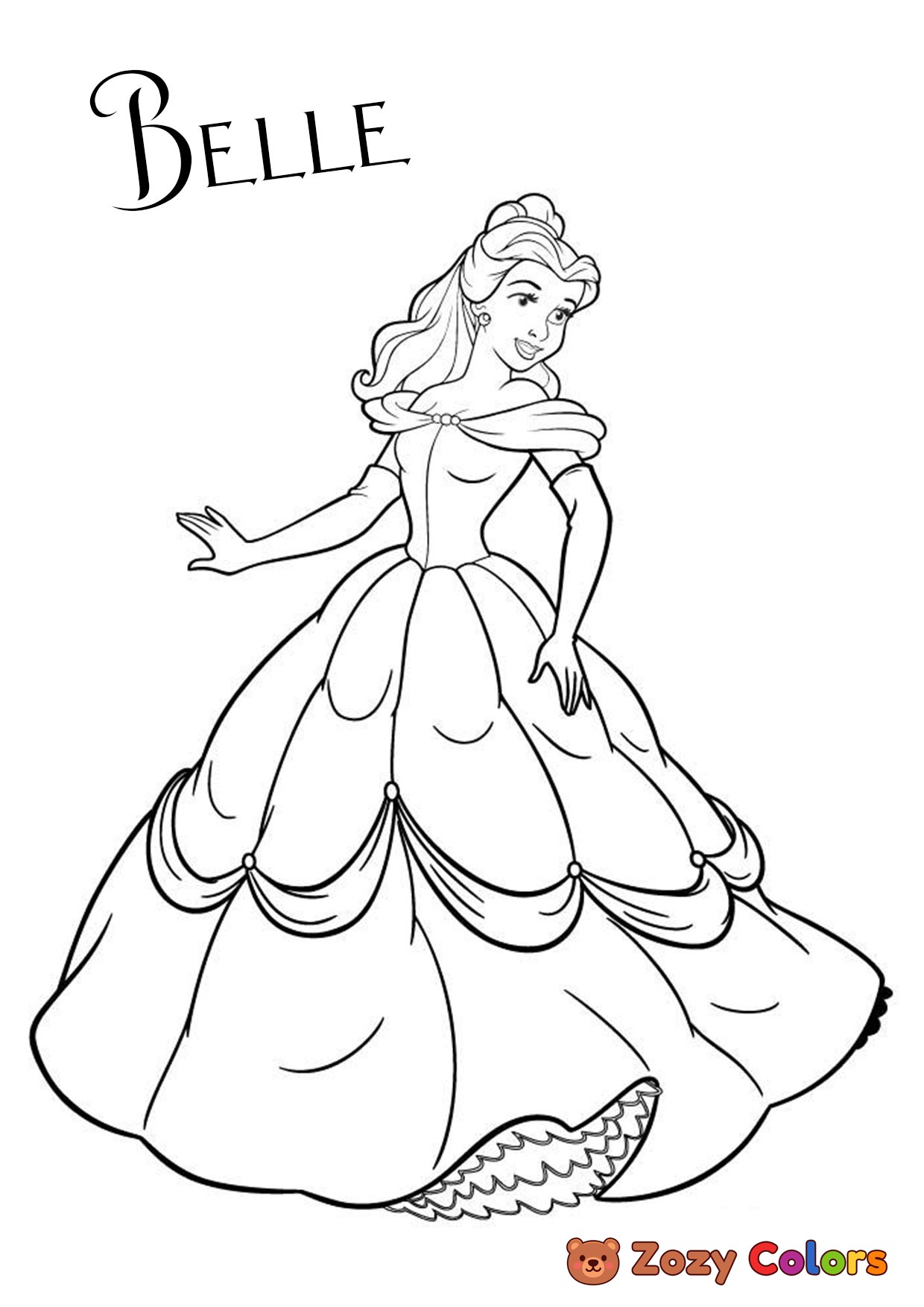 Belle Disney princess. Coloring page to print or download and color for your kids.