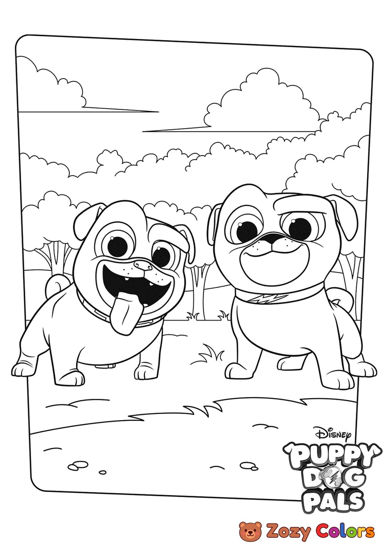 Bingo and Rolly. Coloring page to print or download and color for your kids.