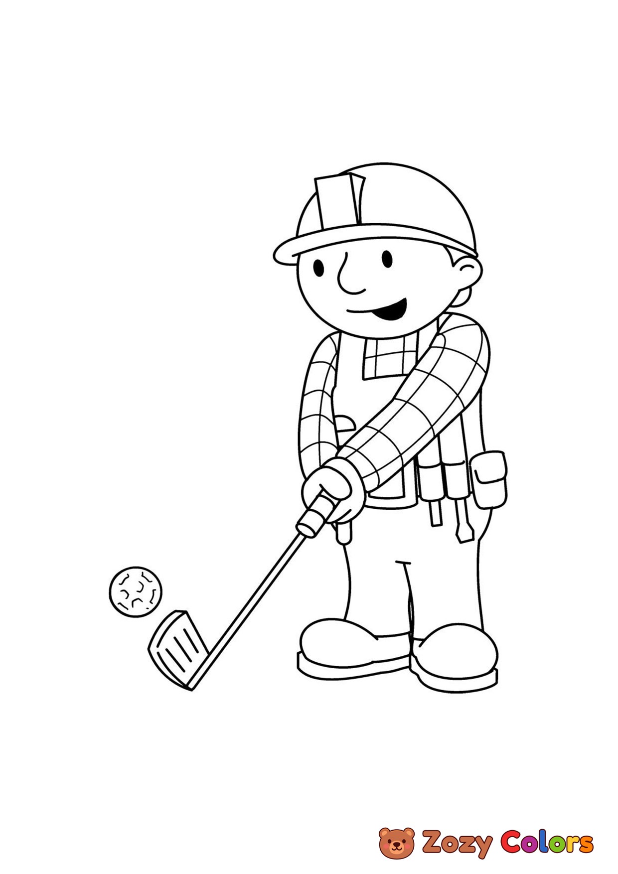 Bob the builder golfing. Coloring page to print or download and color for your kids.