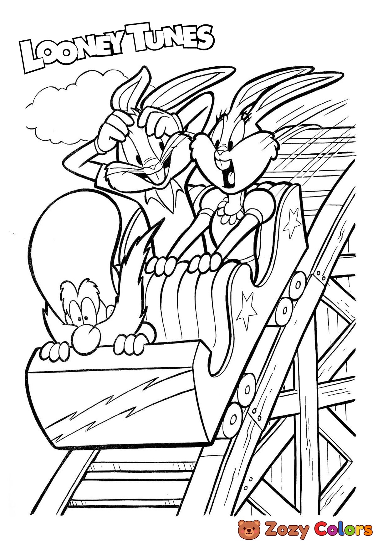 Bugs and Lola riding. Coloring page to print or download and color for your kids.