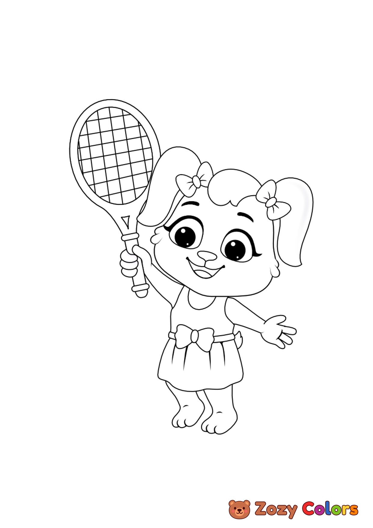 Bunny playing tennis. Coloring page to print or download and color for your kids.