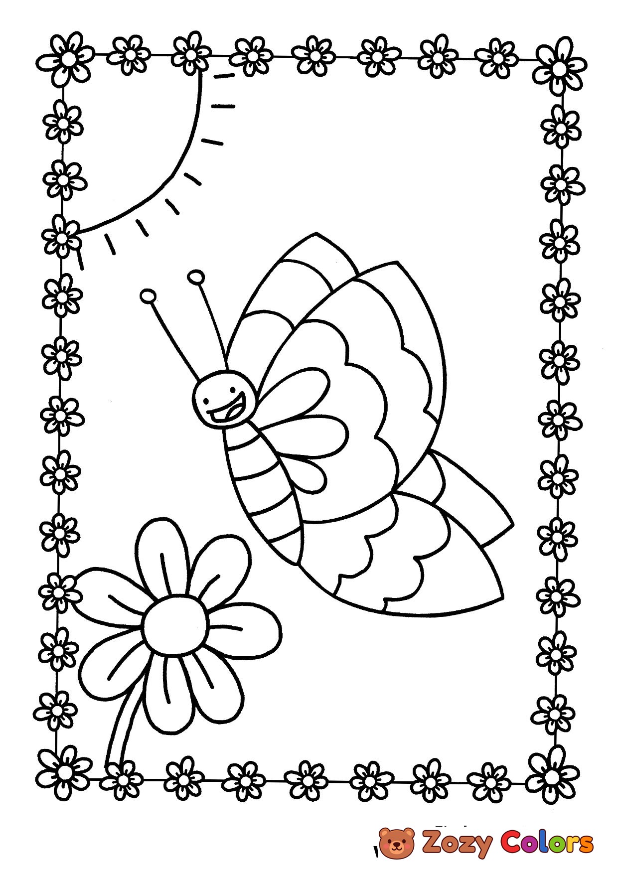 Butterfly flying to a flower. Coloring page to print or download and color for your kids.