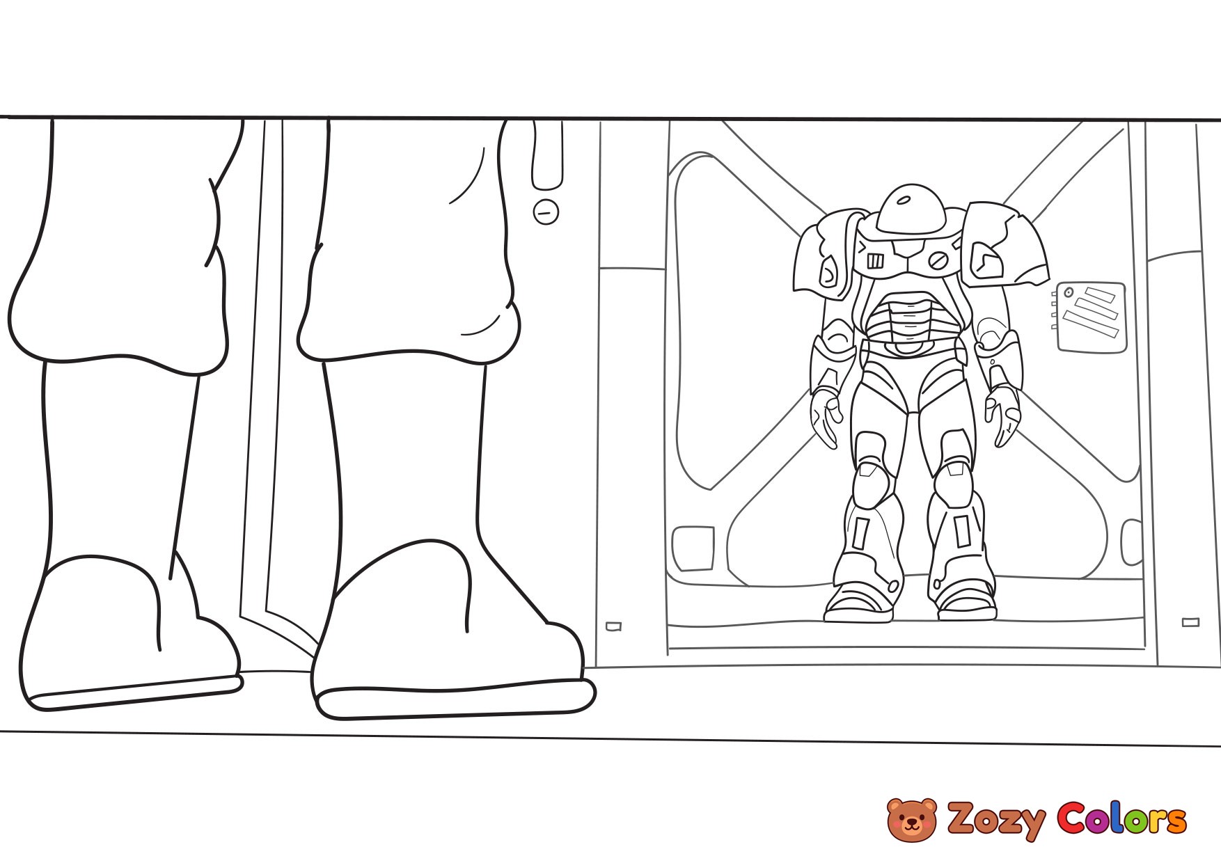 Buzz finding his suit. Coloring page to print or download and color for your kids.