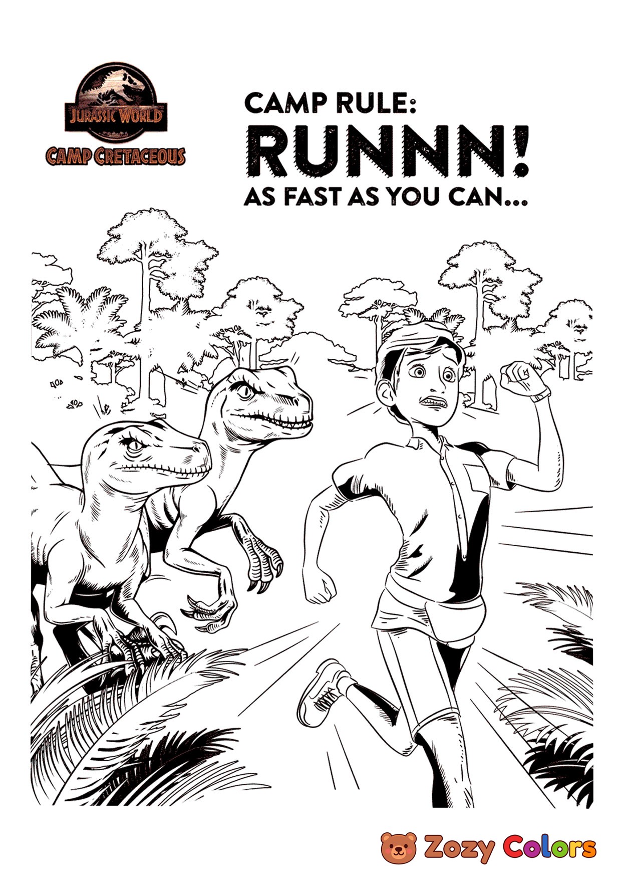 Camp Cretaceous run. Coloring page to print or download and color for your kids.