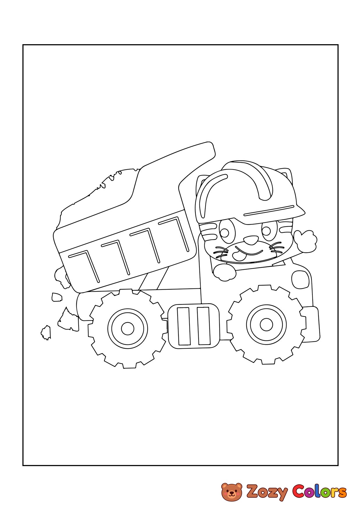 Cat driving a truck. Coloring page to print or download and color for your kids.