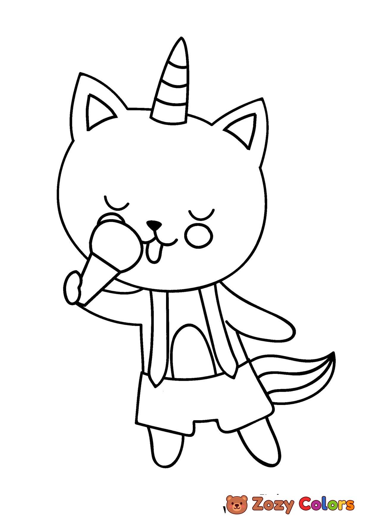 Cat eating ice-cream. Coloring page to print or download and color for your kids.