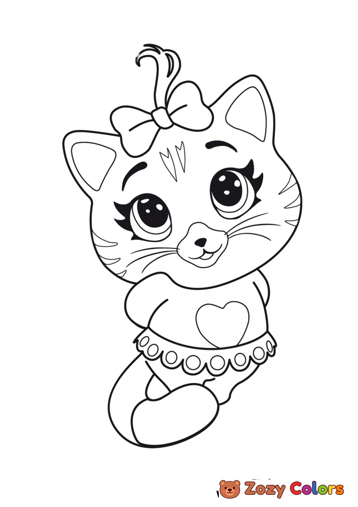 Cute cat with skirt and hearth on her body. Coloring page to print or download and color for your kids.