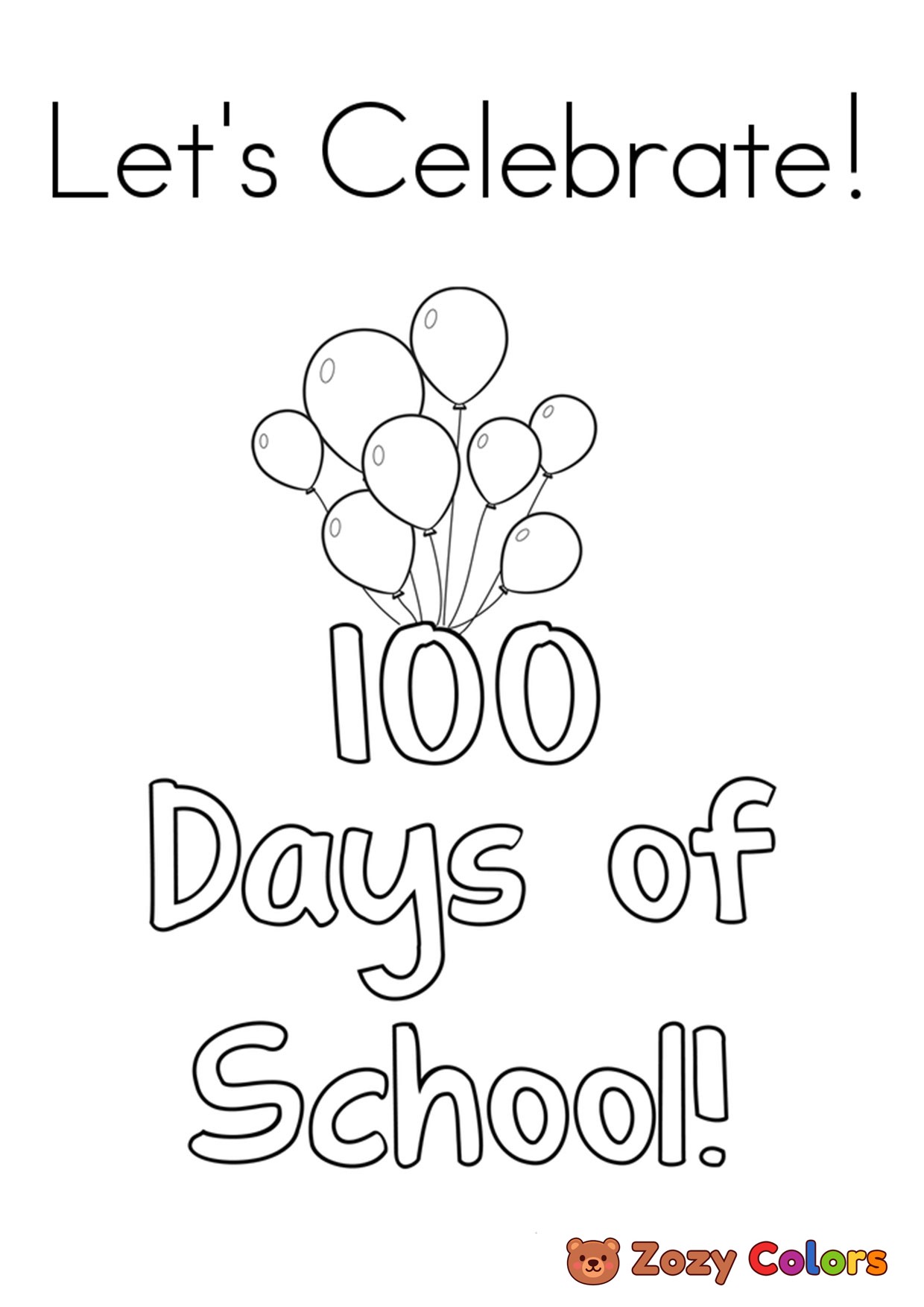 Celebrate 100th Day of School. Coloring page to print or download and color for your kids.