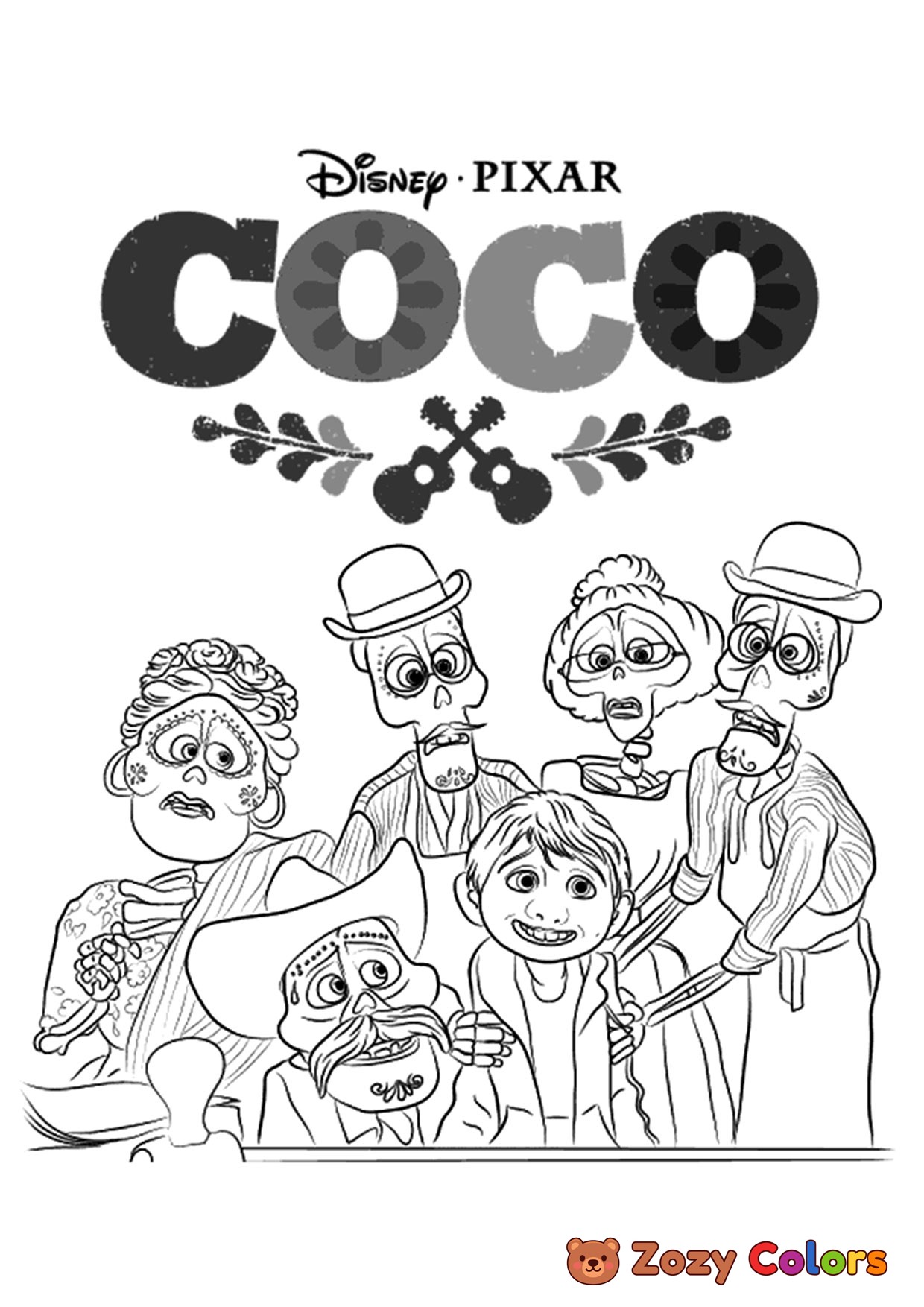 Character from movie Coco. Coloring page to print or download and color for your kids.