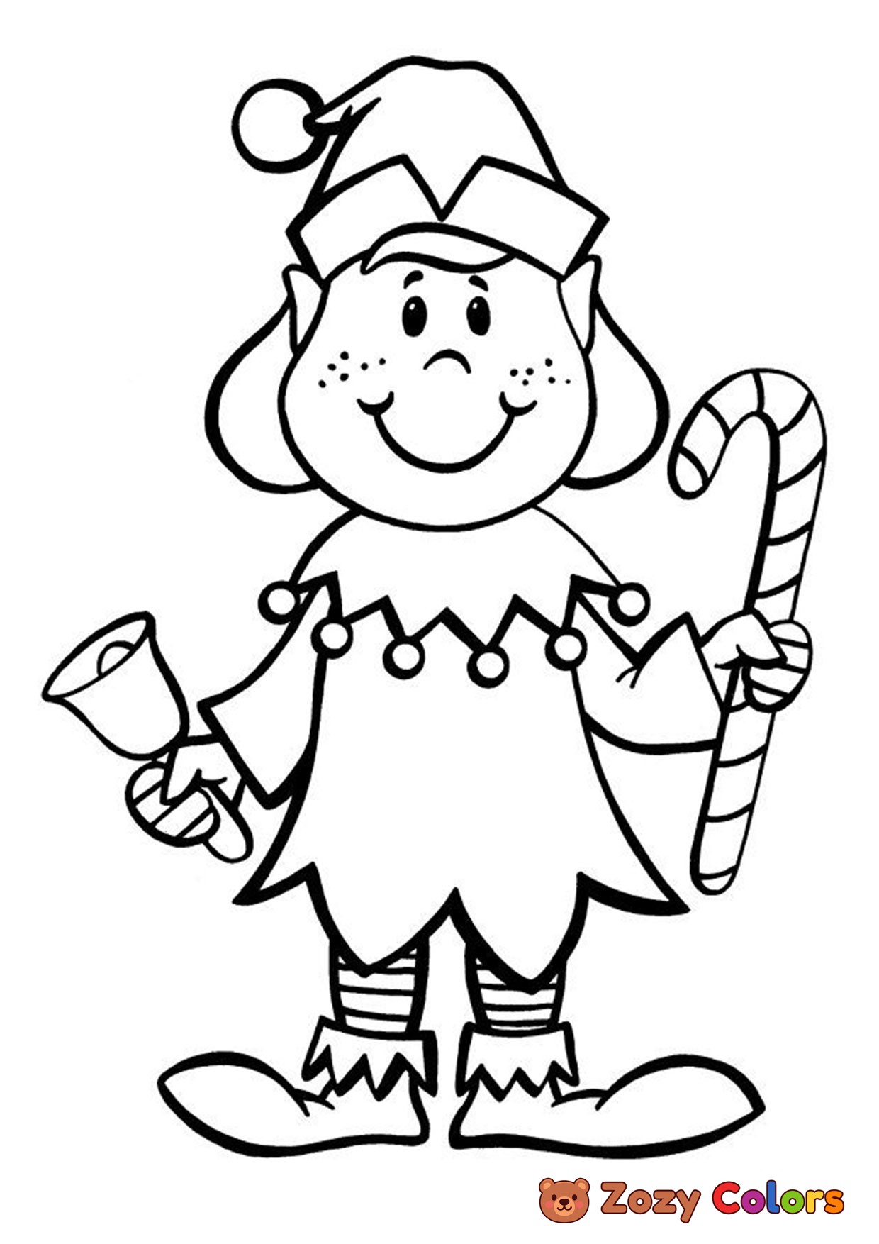 Christmas elf with a bell. Coloring page to print or download and color for your kids.