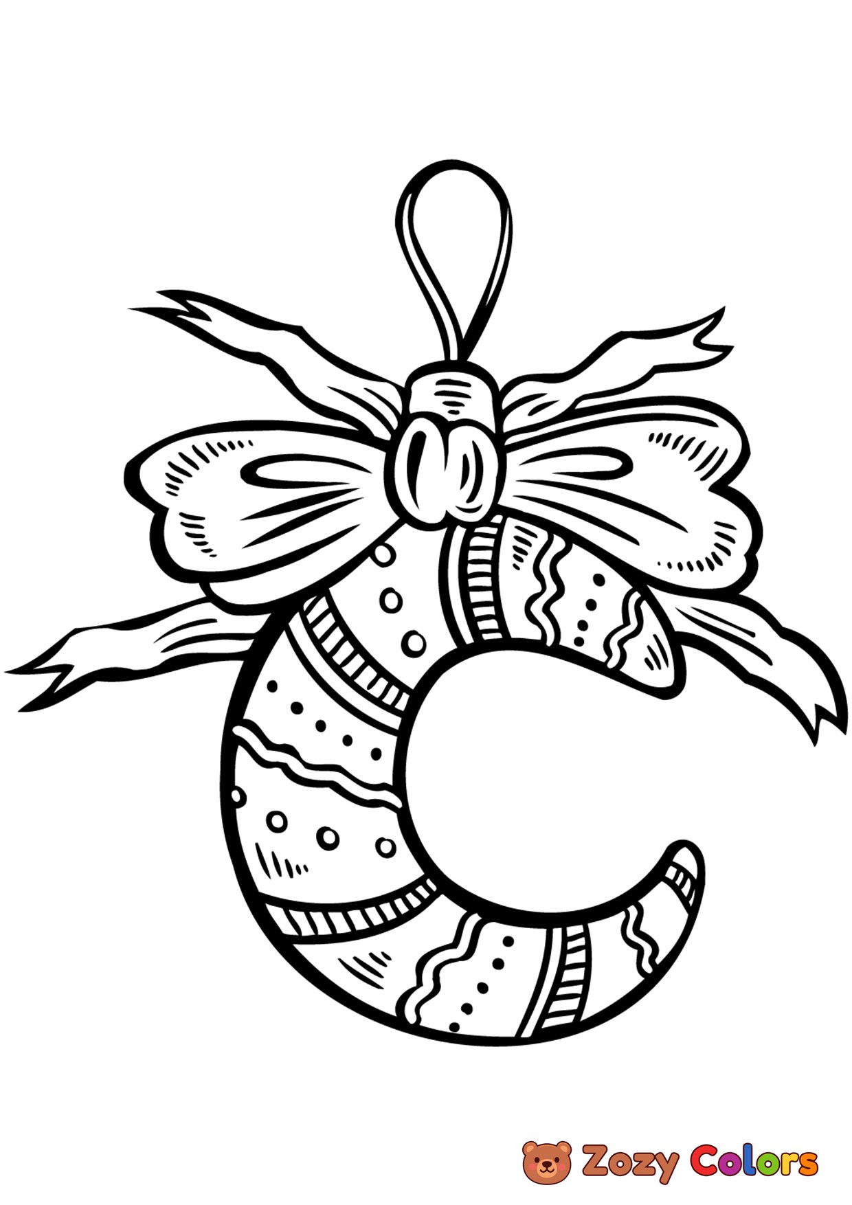 Christmas moon ornament. Coloring page to print or download and color for your kids.