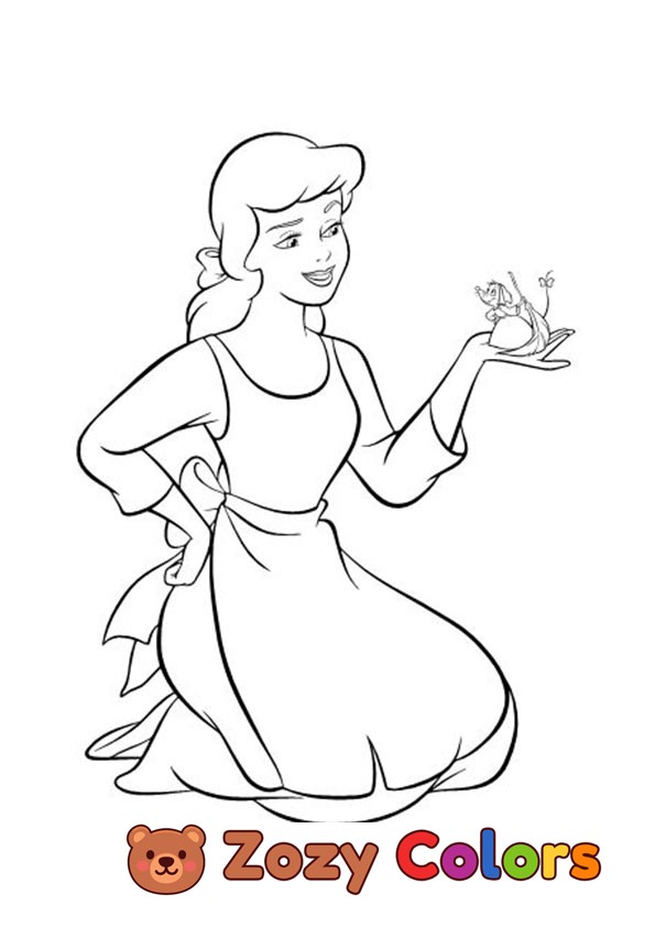 Cinderella and mouse. Coloring page to print or download and color for your kids.