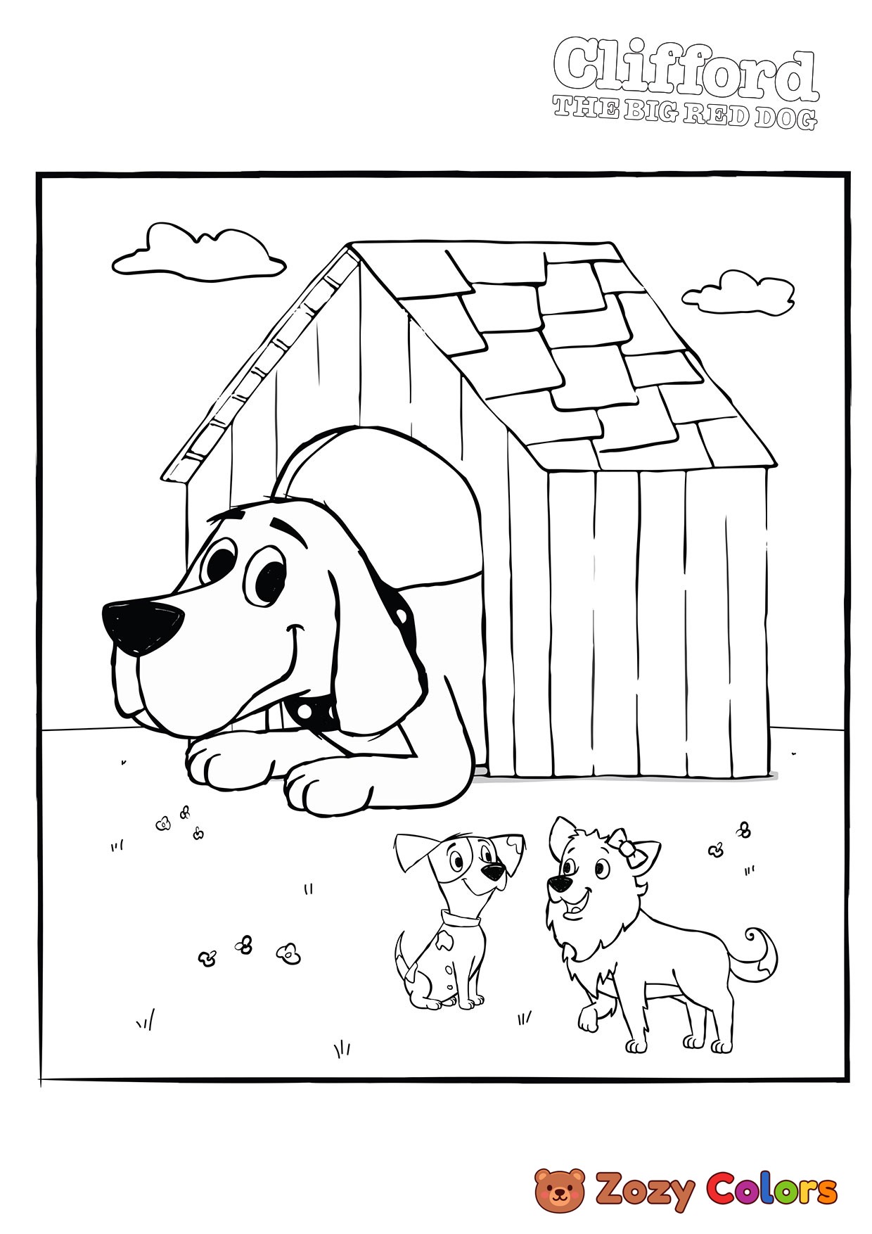 Clifford playing with friends. Coloring page to print or download and color for your kids.