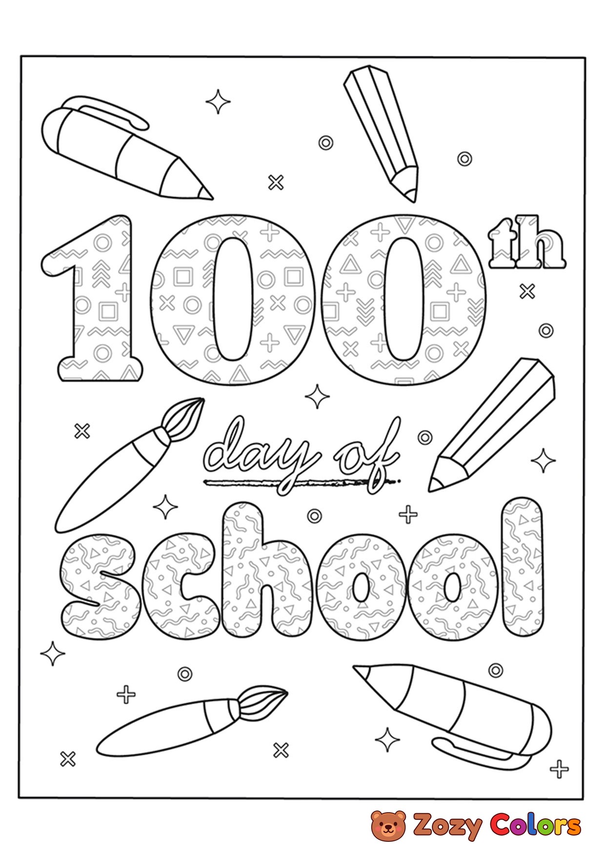 Color 100th Day of School. Coloring page to print or download and color for your kids.