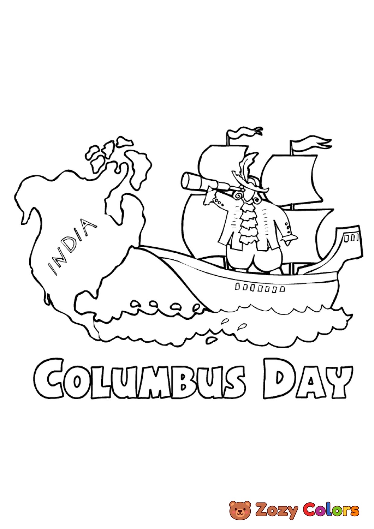 Columbus day. Coloring page to print or download and color for your kids.