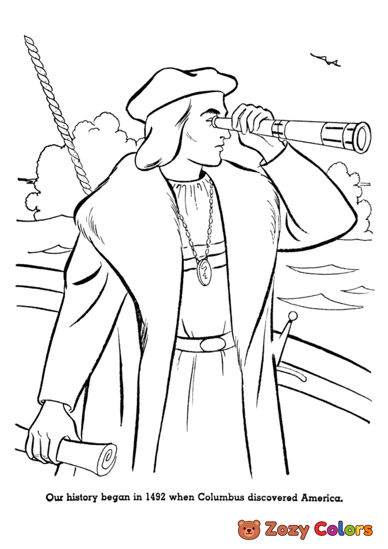 Columbus exploring. Coloring page to print or download and color for your kids.