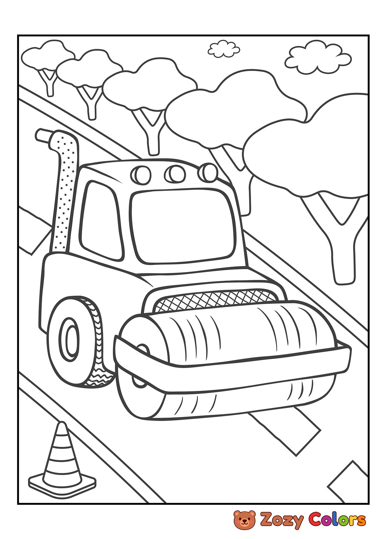 Construction roller. Coloring page to print or download and color for your kids.