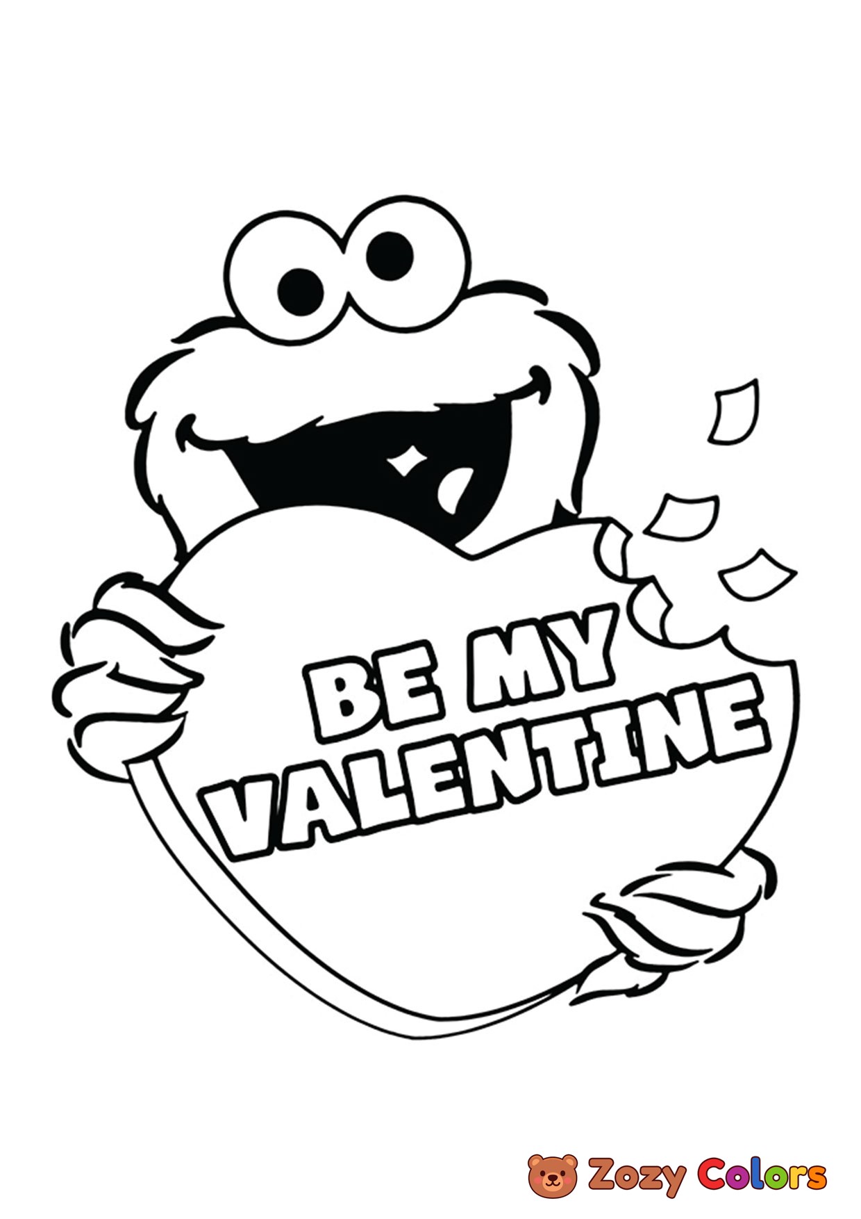 Cookie monster valentine. Coloring page to print or download and color for your kids.