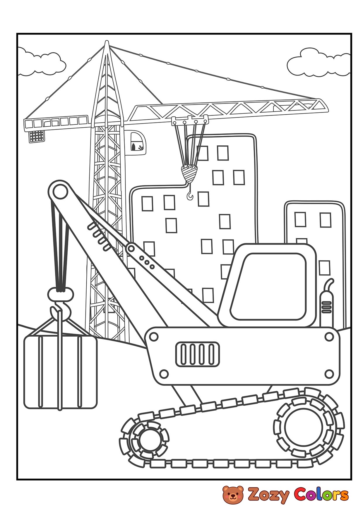 Crane moving load. Coloring page to print or download and color for your kids.