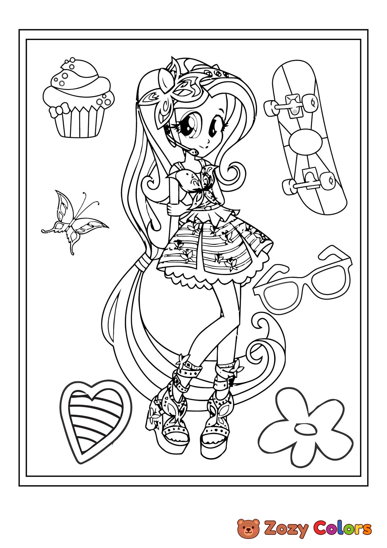 Cute girl. Coloring page to print or download and color for your kids.