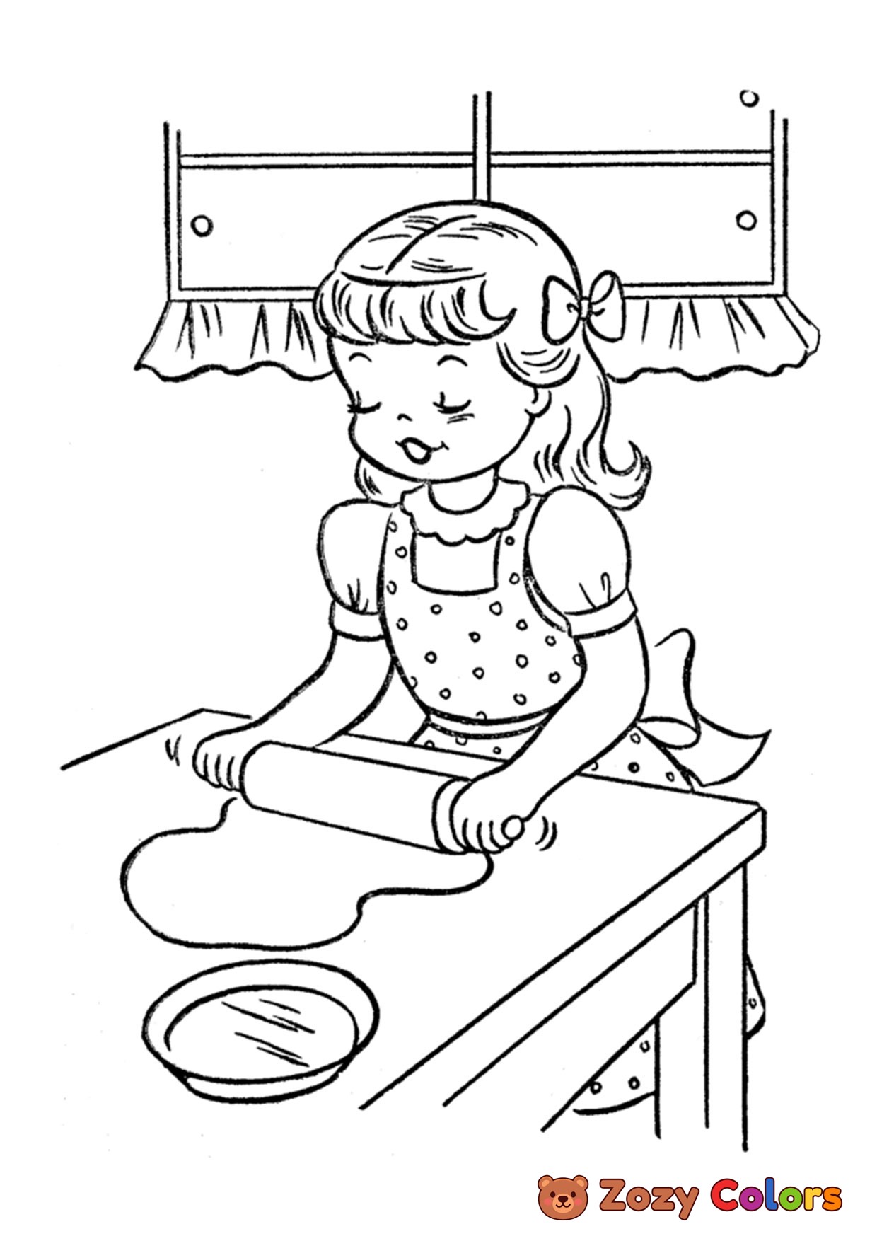Cute girl preparing thanksgiving dinner. Coloring page to print or download and color for your kids.