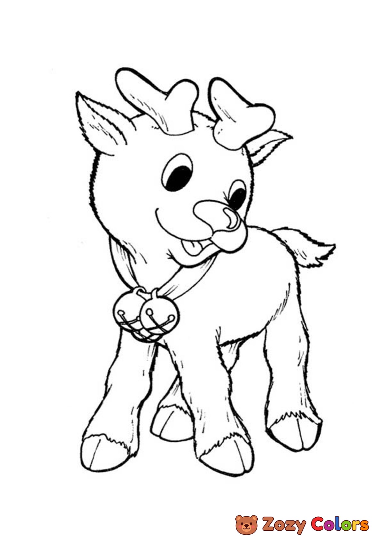 Cute little baby raindeer. Coloring page to print or download and color for your kids.