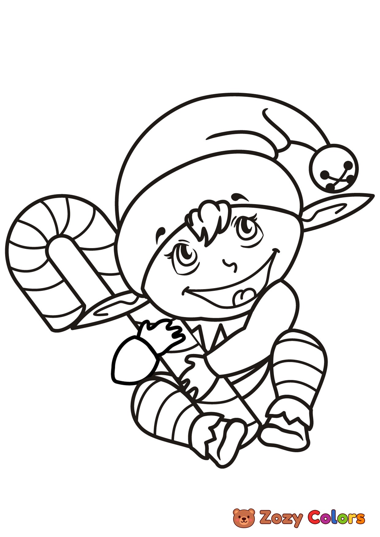 Cute little Christmas elf. Coloring page to print or download and color for your kids.