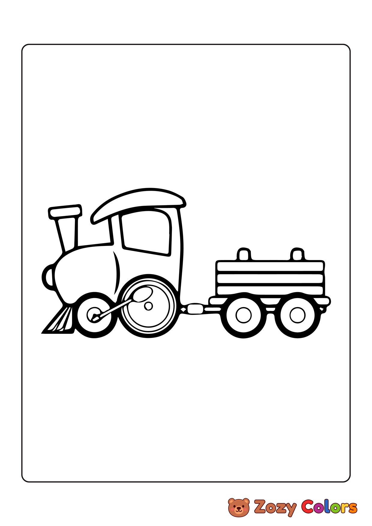 Cute little train. Coloring page to print or download and color for your kids.