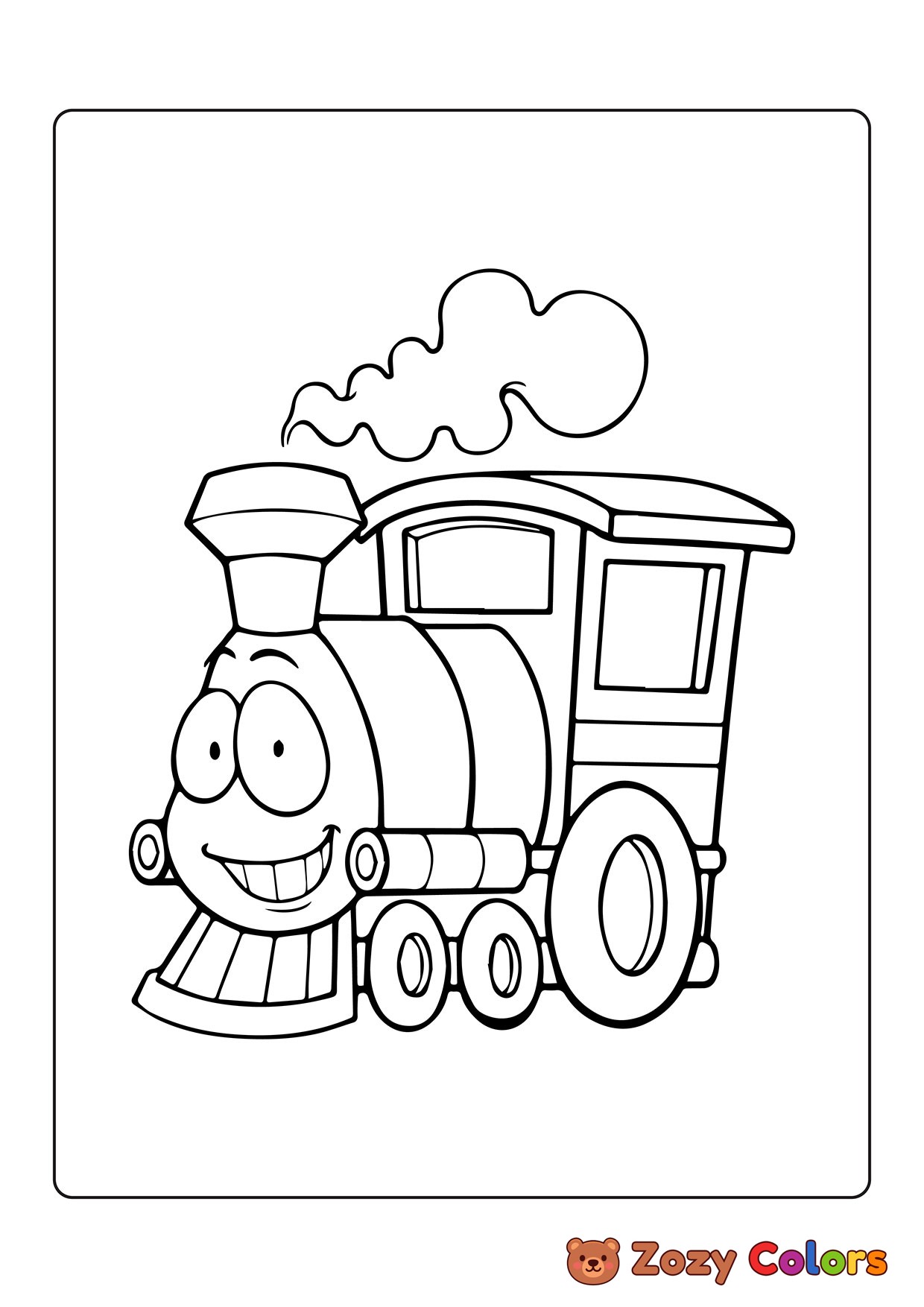 Cute locomotive. Coloring page to print or download and color for your kids.