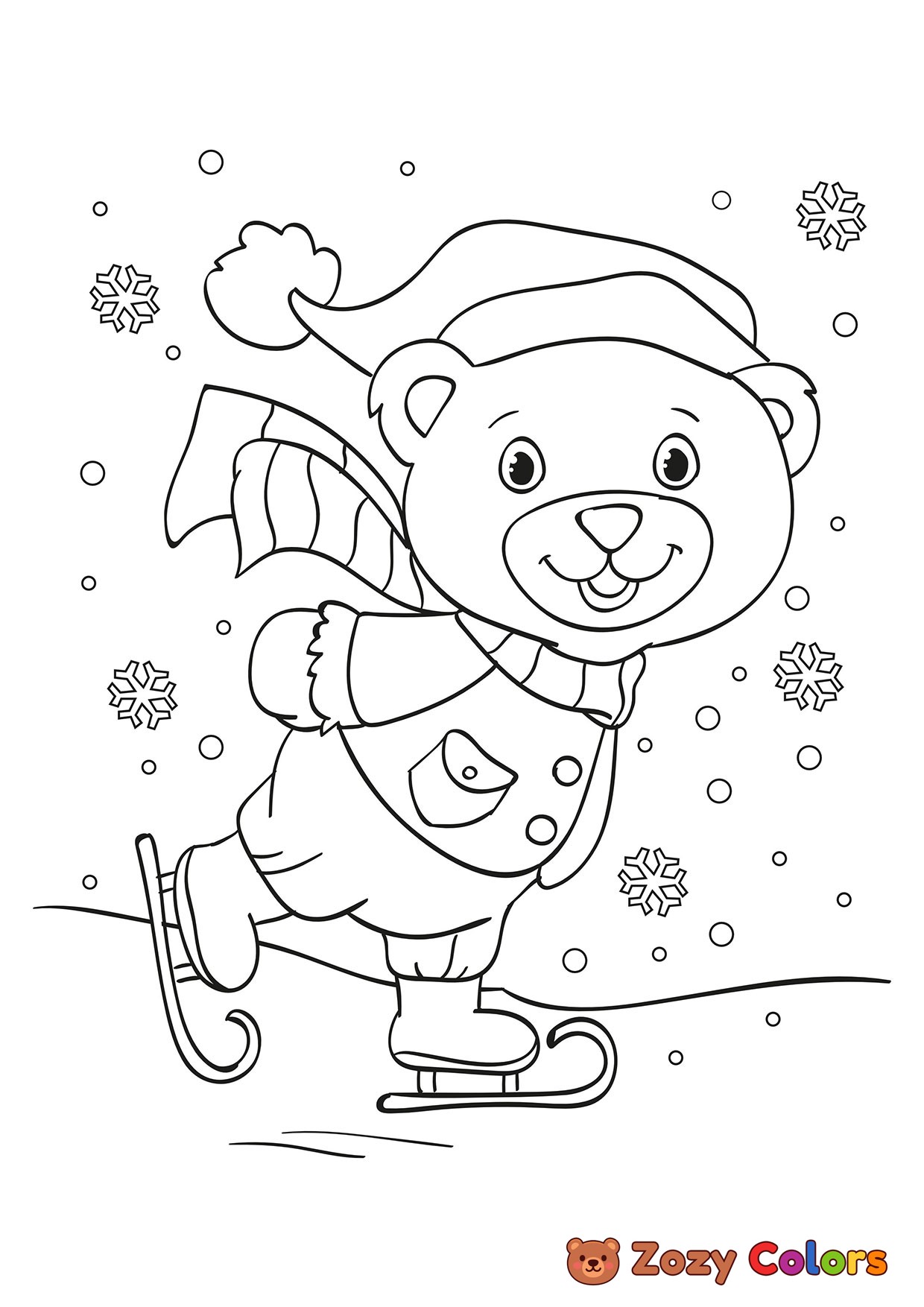 Cute Teddy bear ice skating. Coloring page to print or download and color for your kids.