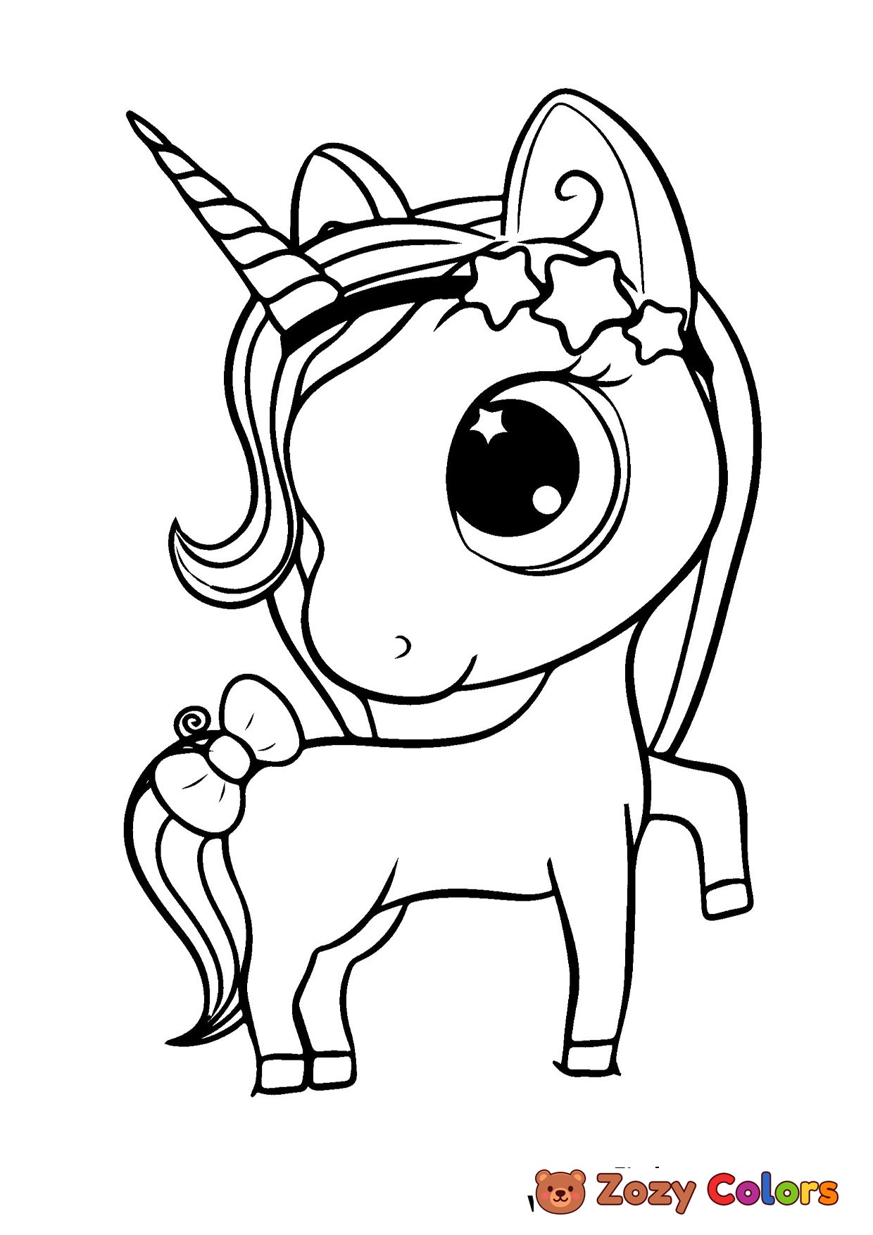 Cute unicorn with a star tiara posing for picture. Coloring page to print or download and color for your kids.