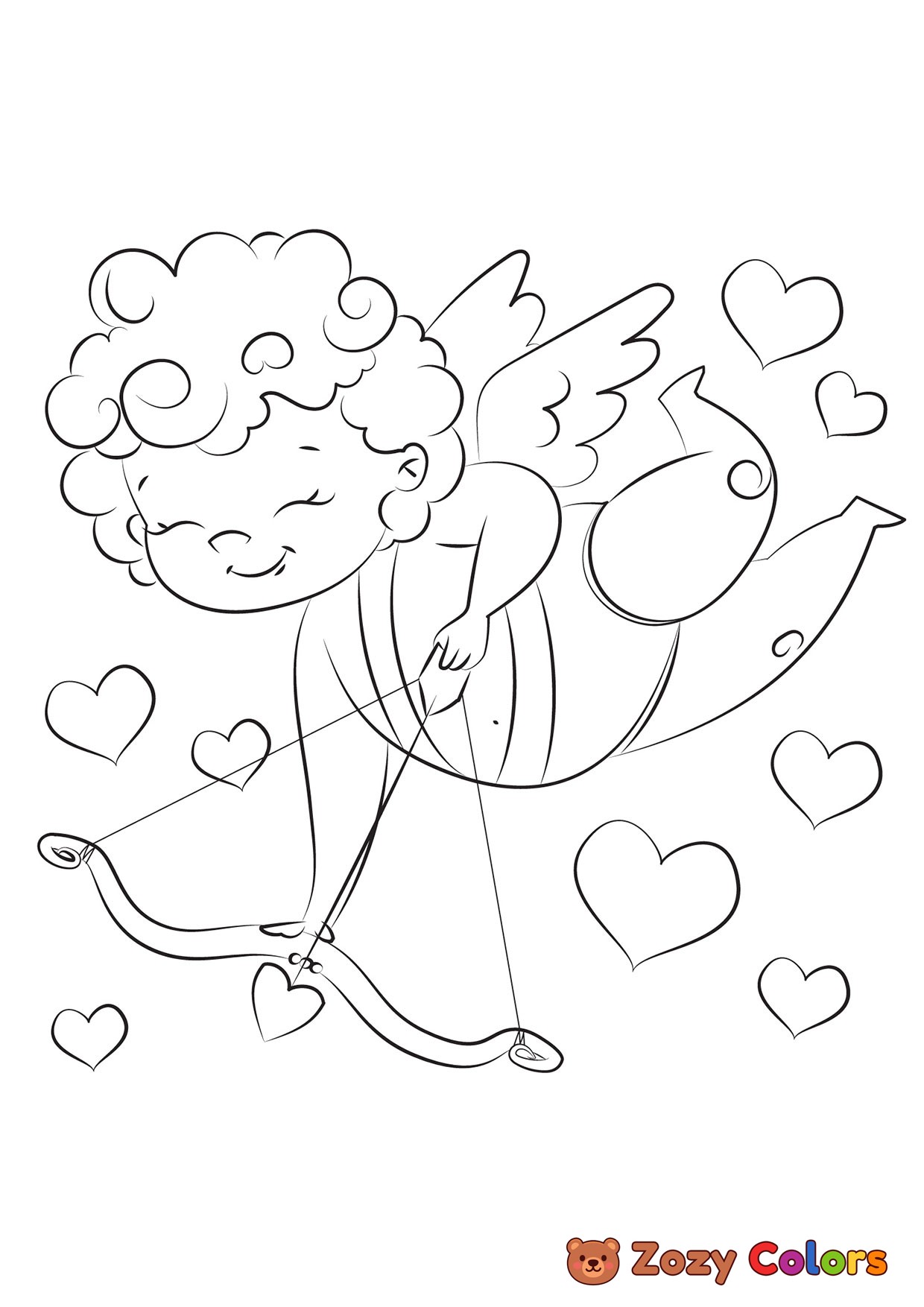 Cute Valentines Cupid. Coloring page to print or download and color for your kids.